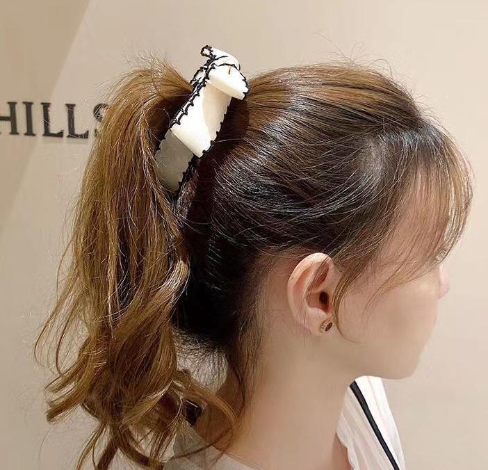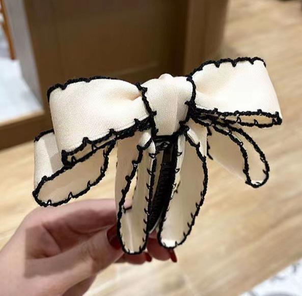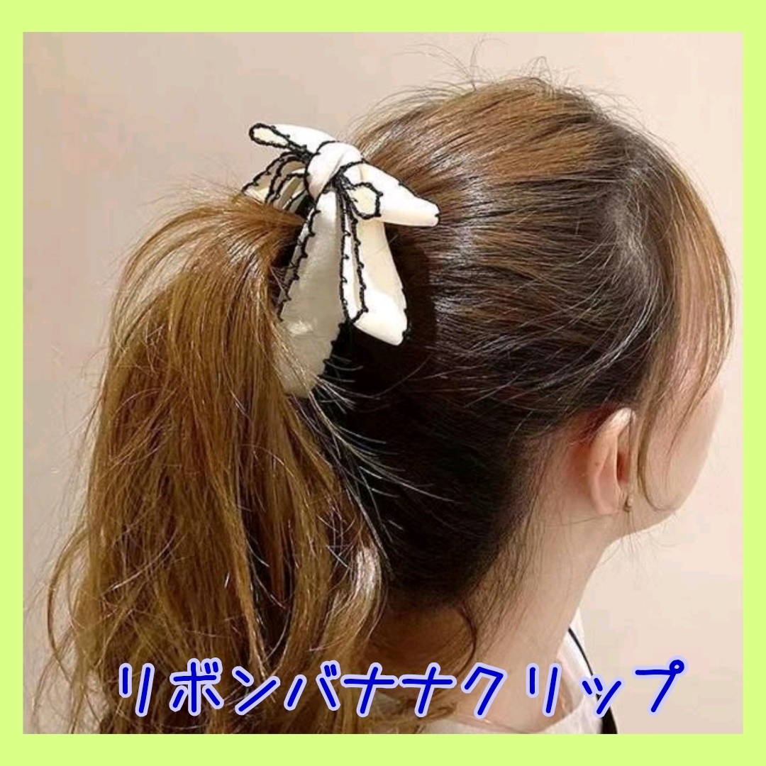 リボン サテン バナナクリップ ヘアクリップ ポニーテール ベージュ