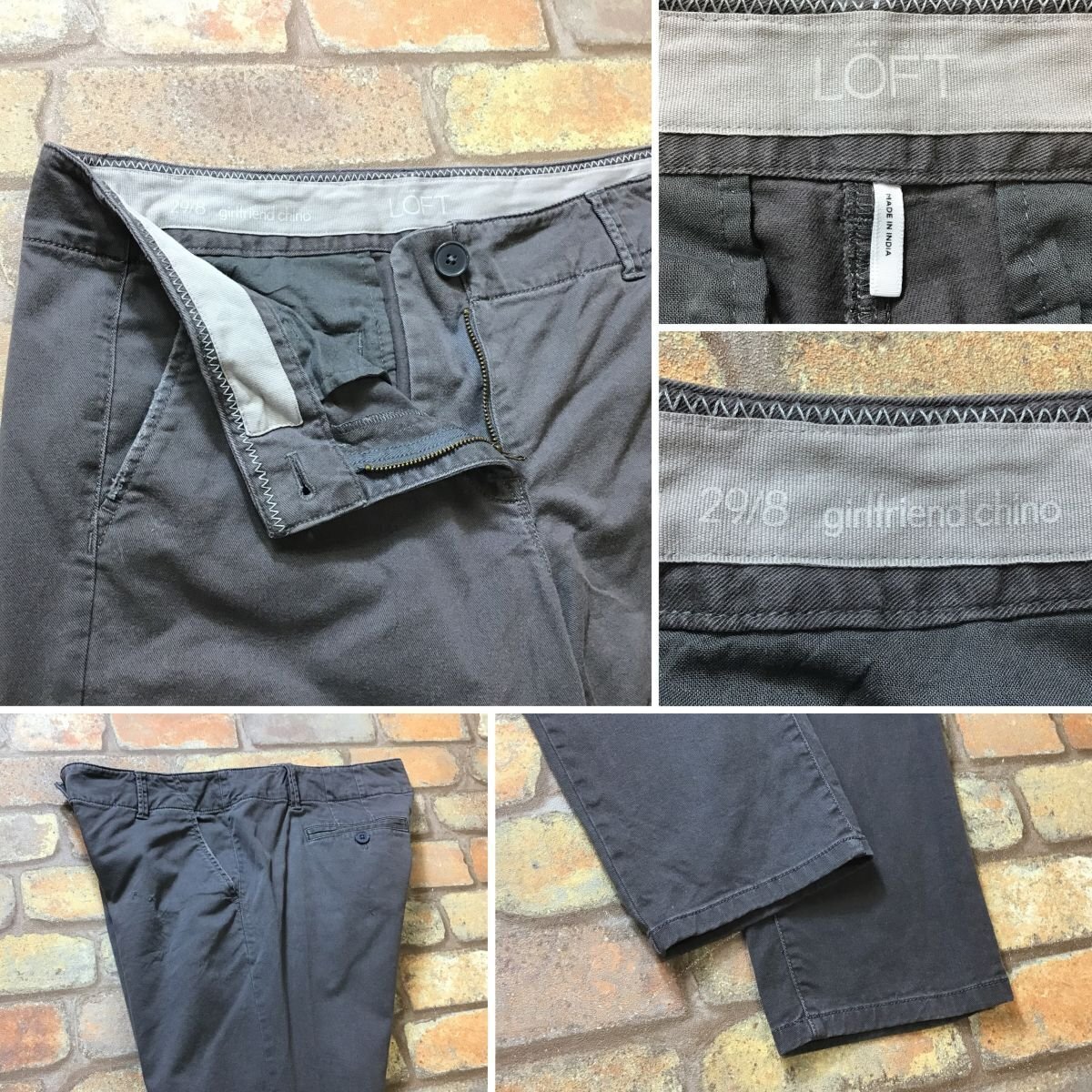 合計落札金額¥8,000円以上で、、、 送料無料!! ※こちらからの[合計支払い金額通知]をご確認の上、お支払い下さい♪ -------------------------------- 【 LOFT 】 4ポケット ストレッチコットン チノパン ● USA輸入・正規品 ● ● 海外サイズ規格 ● -------------------------------------------------------- ◆ 商品説明 ◆ ・ポケットの縁、フロント前立て部分に擦り傷有り。 ・フロント・ヒップにキズ、小穴有り。 ※USEDジーンズ・パンツ特有の... ・ポケット入り口の僅かなスレ ・レザーベルト使用による色移り は“重度な状態”以外は記載を省かせていただきますので、 全体写真を拡大の上、ご確認下さい。 ストレッチの効いた生地で動きやすく快適な履き心地の1本 様々なアイテムと合わせやすいストレートシルエットとなっています。 -------------------------------------------------------- ◆ サイズ ◆ W29 レディース M程度 ※海外規格の為、下記実寸をご確認下さい。 ◆ 実寸 ◆ ウエスト:43cm 股上:22cm 股下:73cm ワタリ幅:31cm 裾幅:16cm ※全て平置き時のサイズです。 ※素人採寸の為、多少の誤差はお許しください。 -------------------------------------------------------- ◆ 素材表記 ◆ コットン 97% スパンデックス 3% ----------------- | |||||