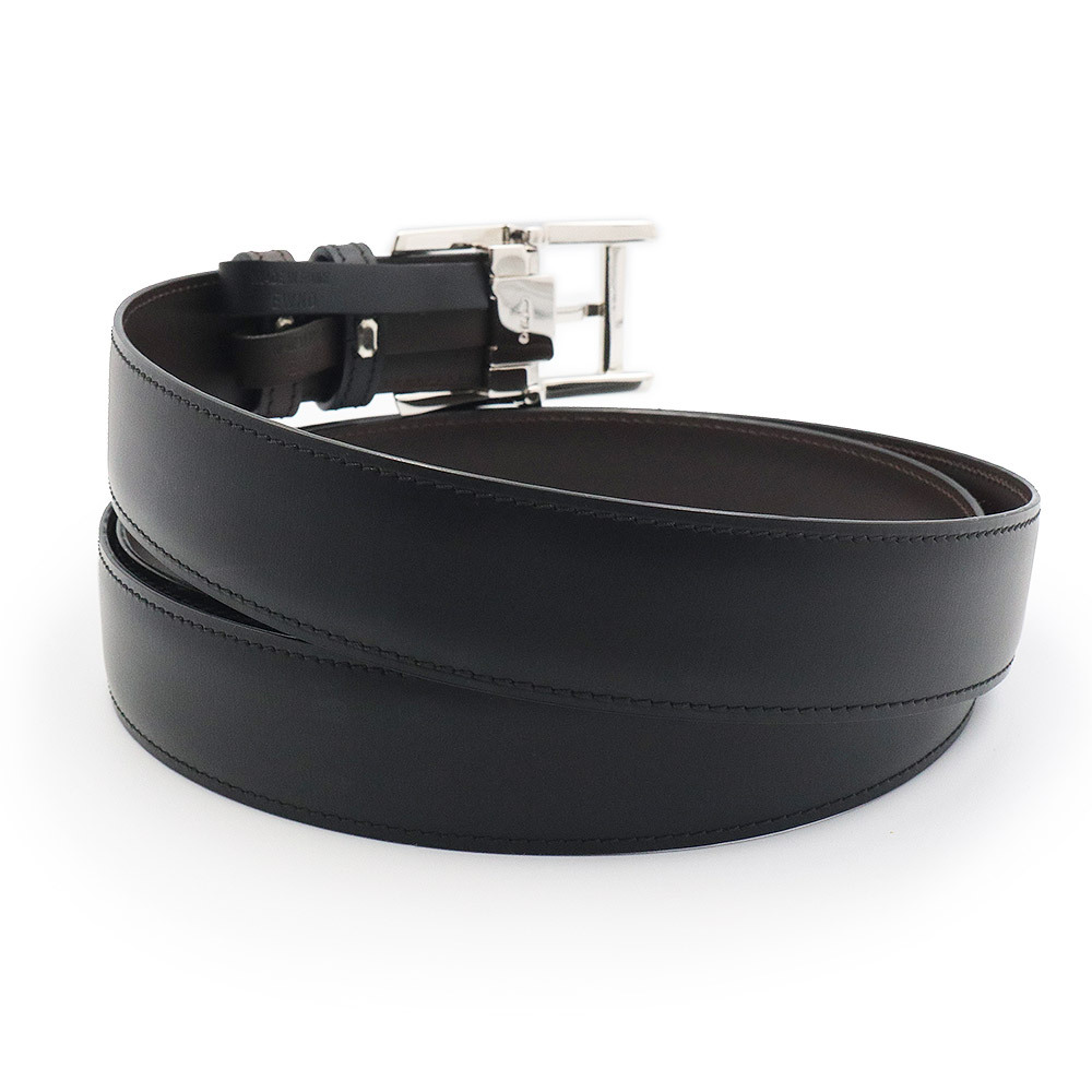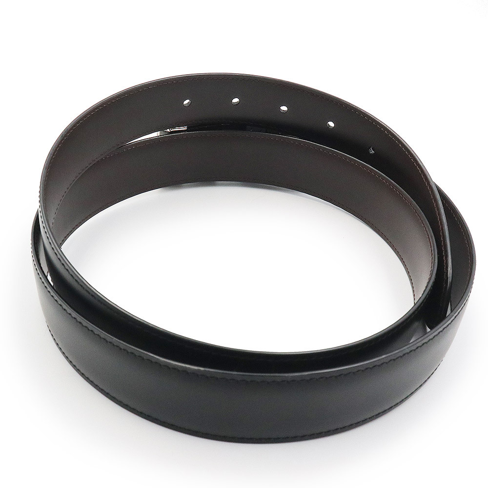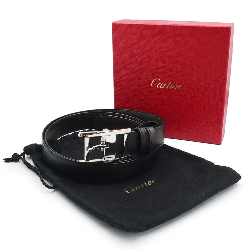 カルティエのリバーシブルベルト。オーソドックスなシルバーバックルはデイリーにお使いいただけます。バックルを外してベルト部分をカットしサイズ調整も可能。リバーシブルタイプなので、幅広くお使い頂けます。