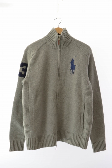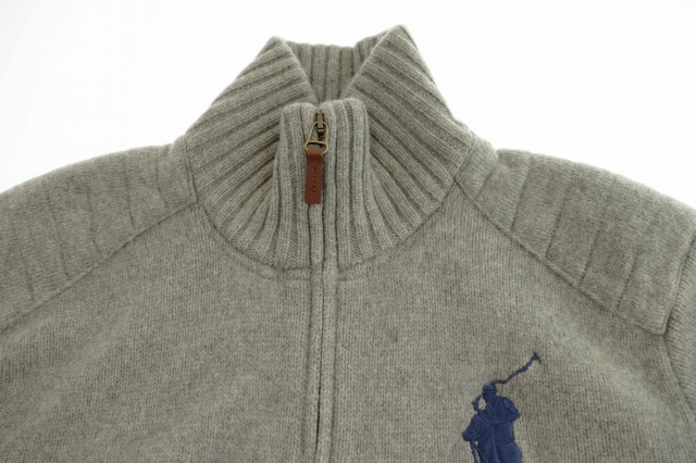 ラルフローレン RALPH LAUREN ビッグポニー ジップアップ ニット カーディガン L グレー ブランド古着ベクトル 250923