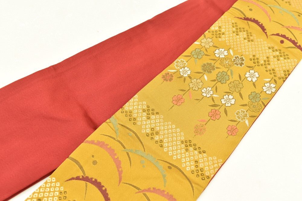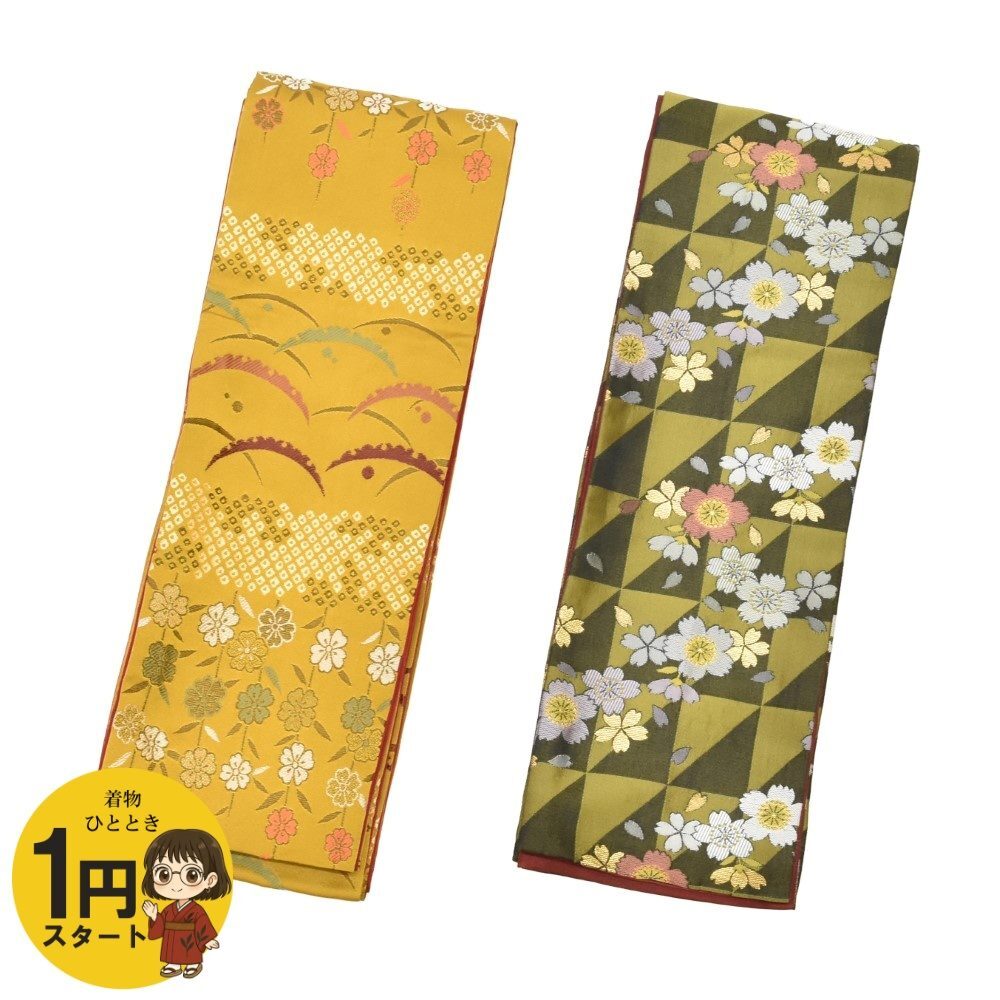 【素材】化繊 【商品説明】半幅帯の2点セットです。 【全体ランク】 AAA 【シミ汚れ等の状態】 ※こちらの商品はおまとめ品の為サイズや素材、汚れなど詳細な検品は行っておりません。 きれいな状態です |
