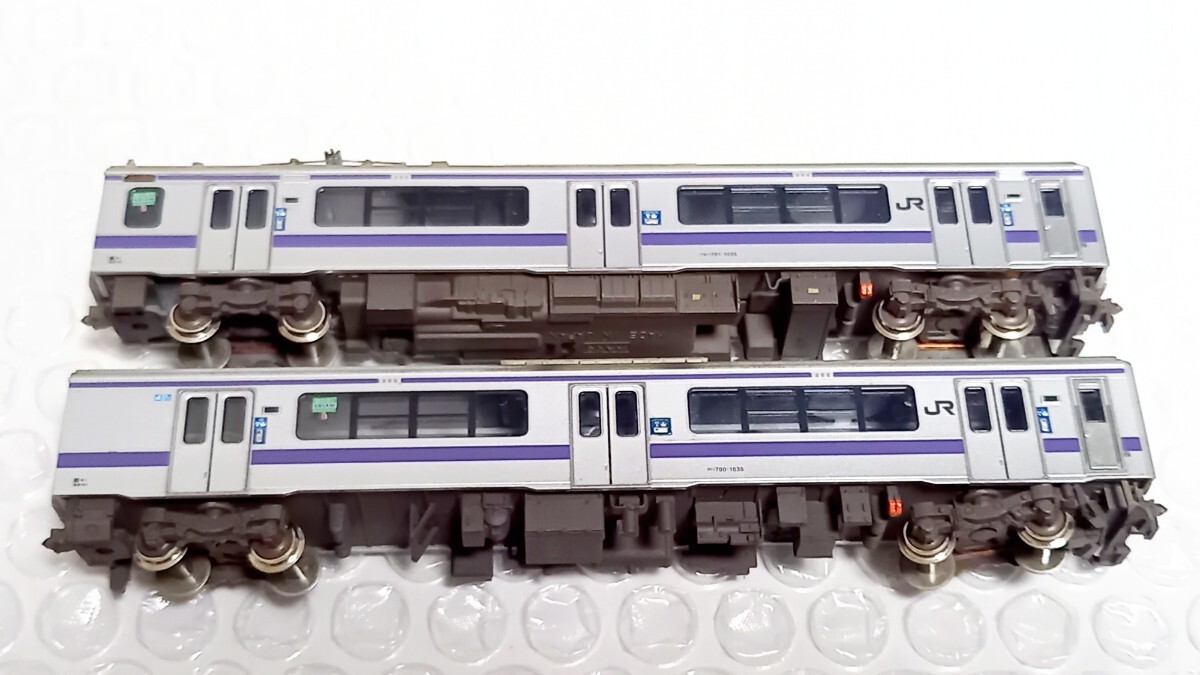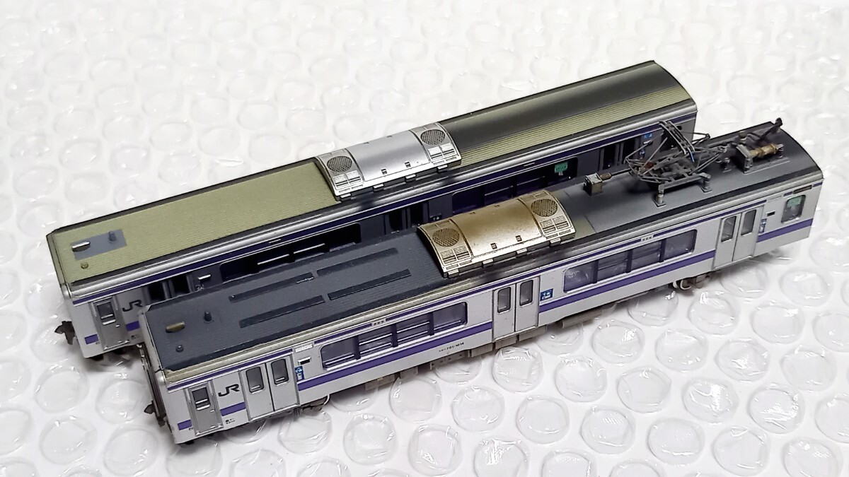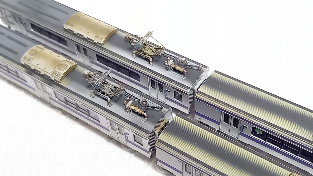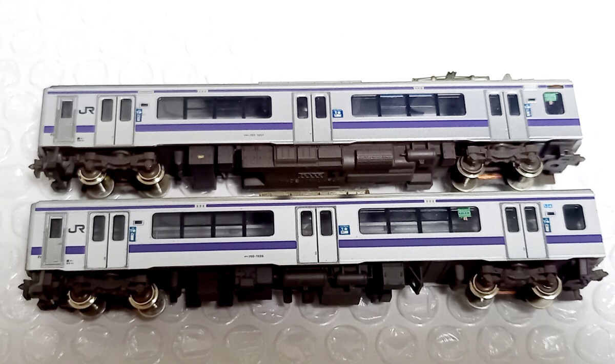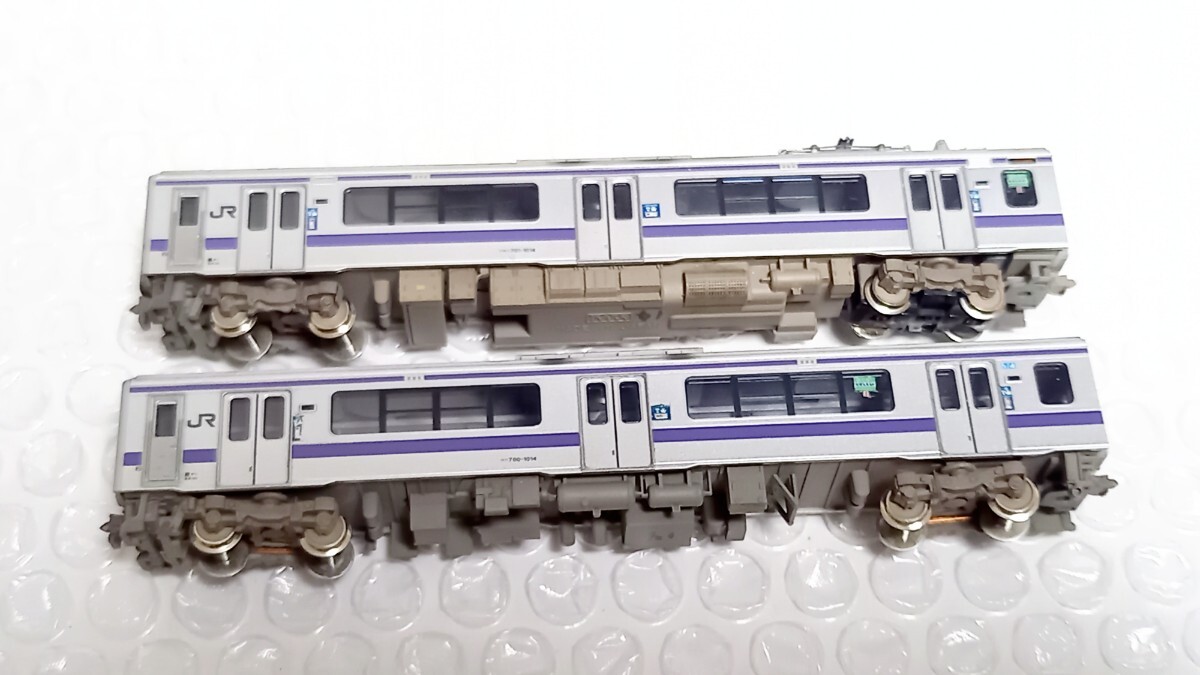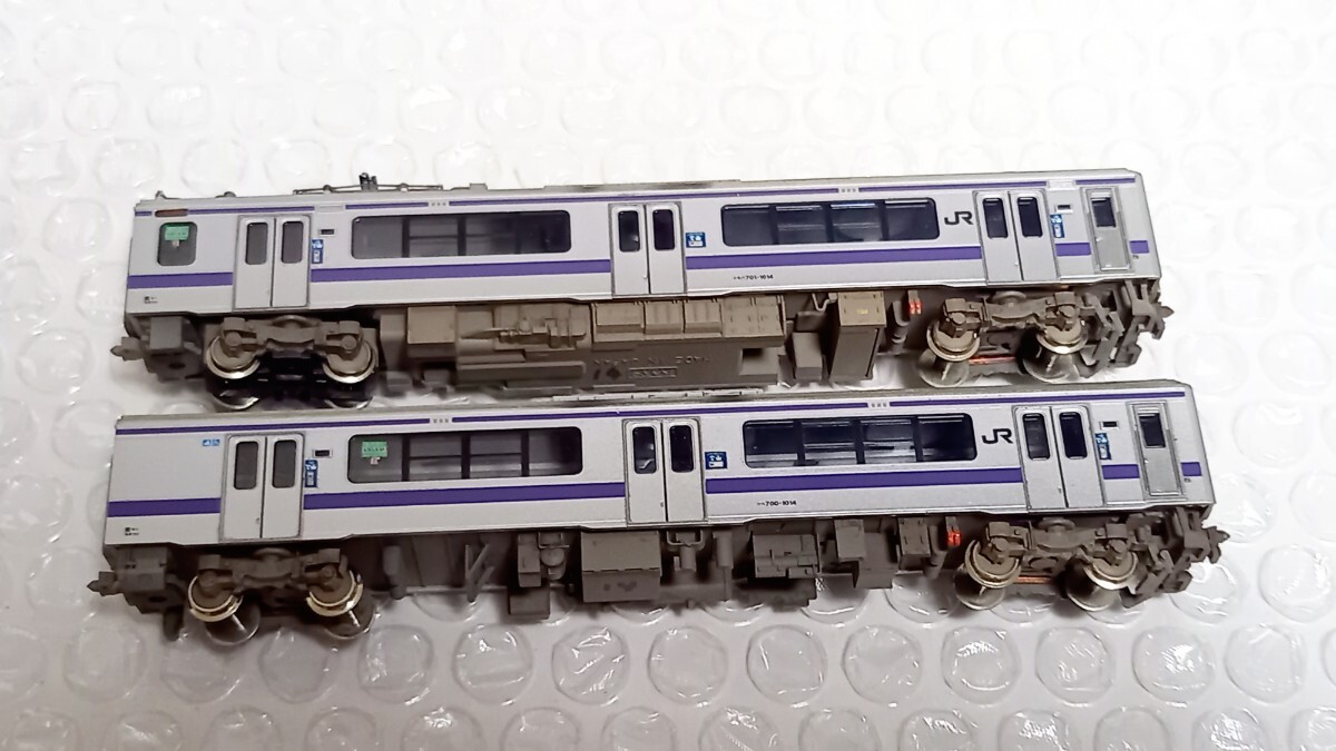 動力はパンタ付きのクモハ701各2両に設定、協調を考慮しゴムタイヤ付き車輪は片方の編成に集約してあります。
