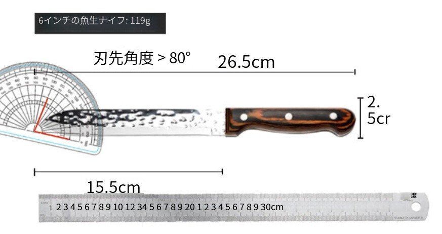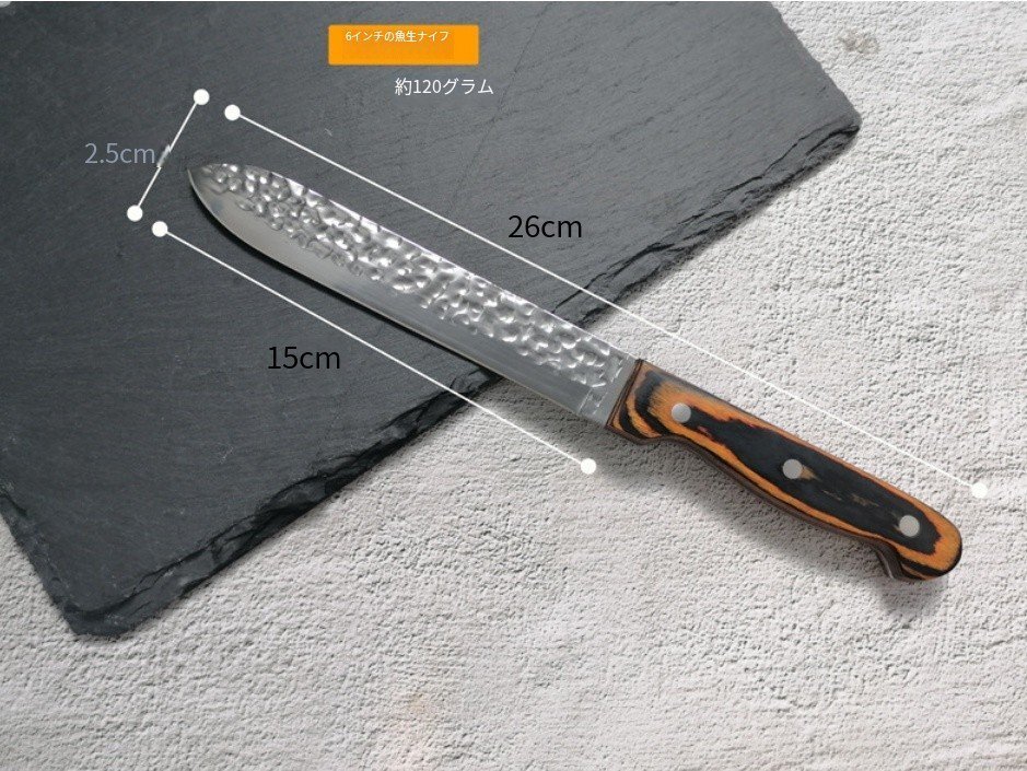 6インチ刺身包丁 キッチンナイフ 彩木柄 家庭用 菜切包丁 木製ハンドル 庖丁 業務用 家庭用 フルーツナイフ