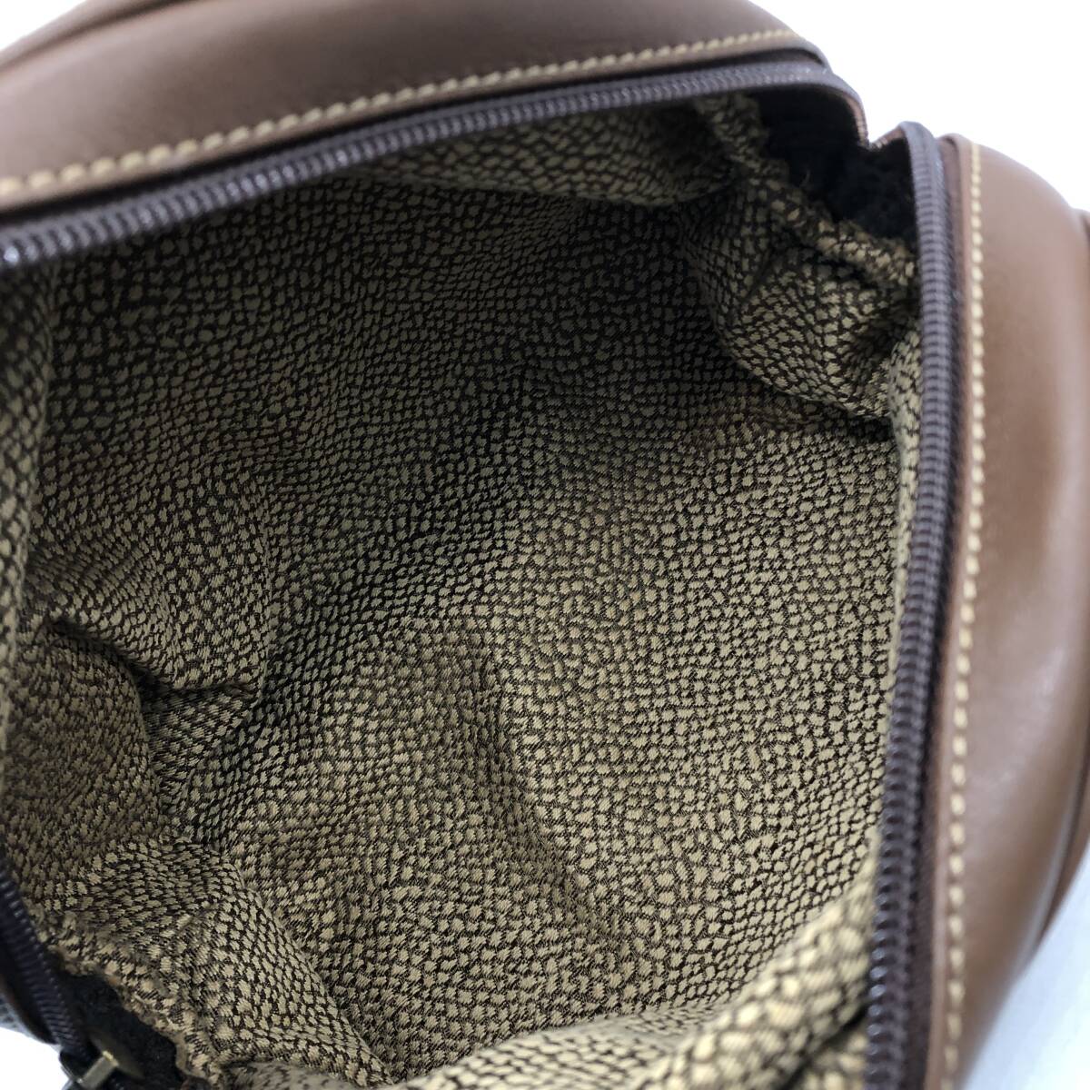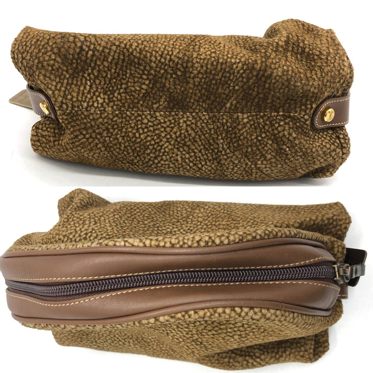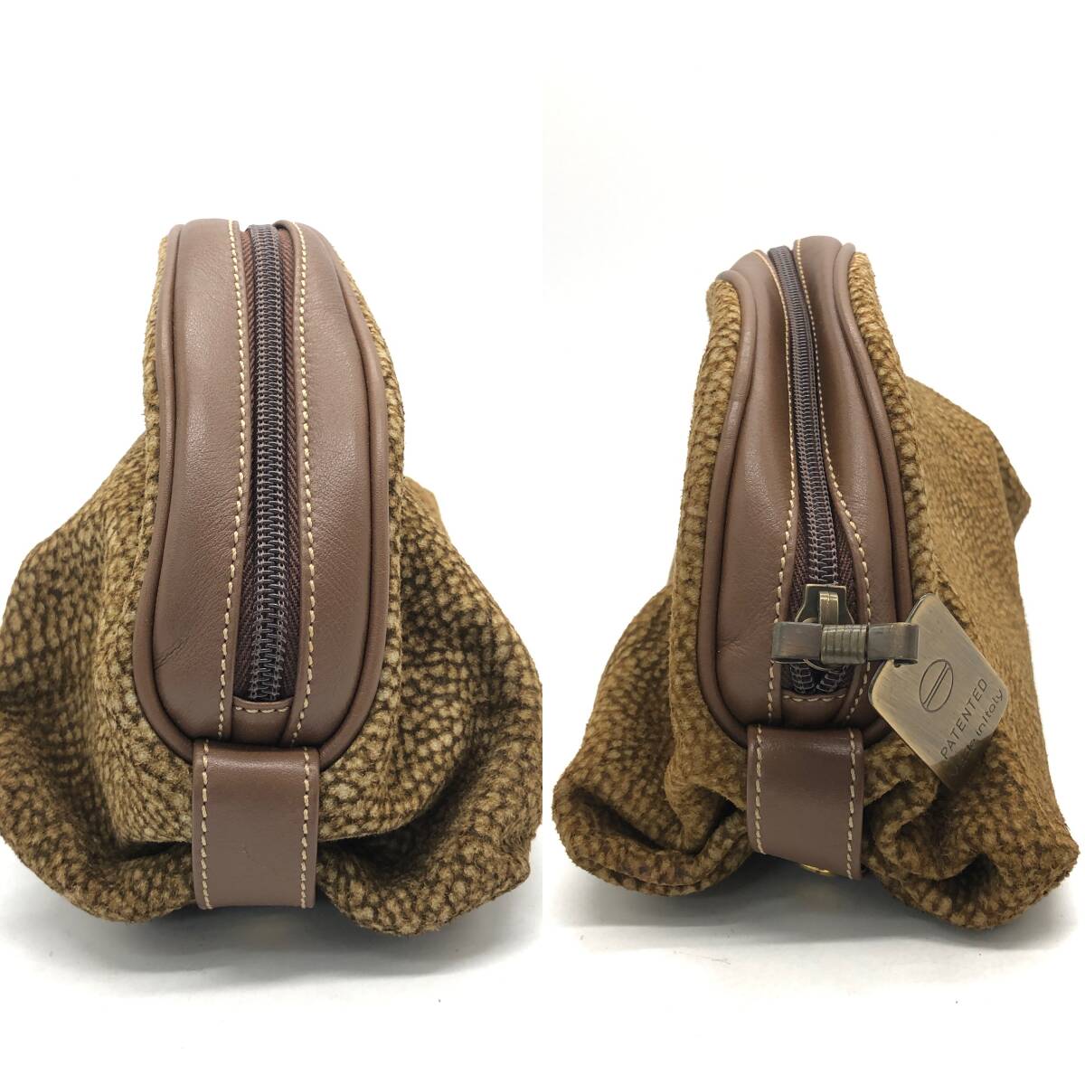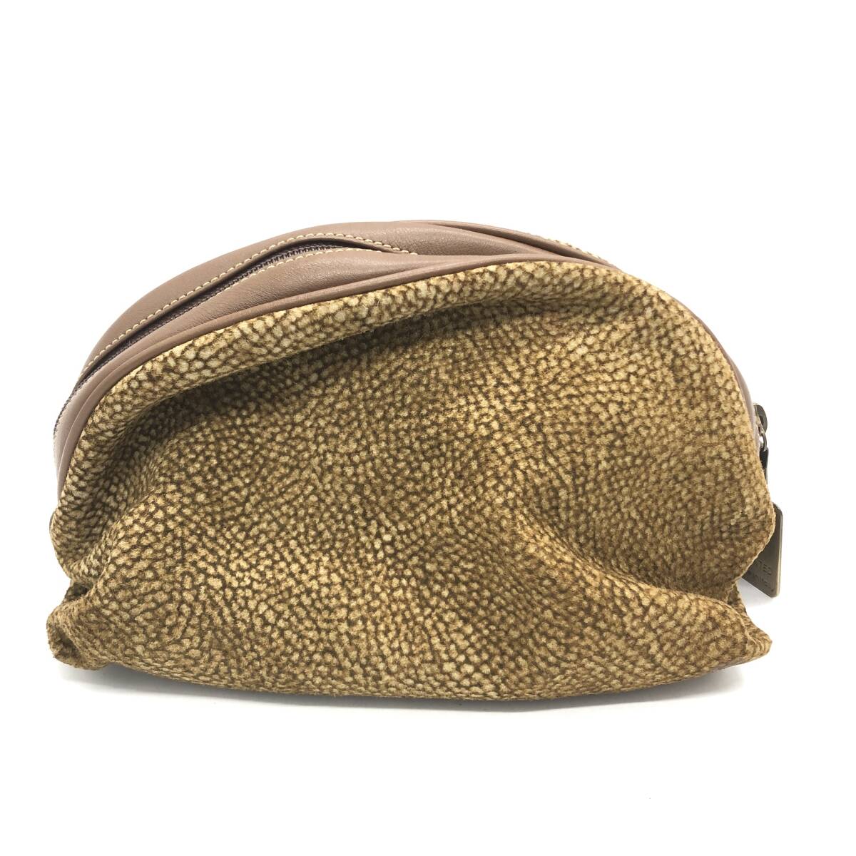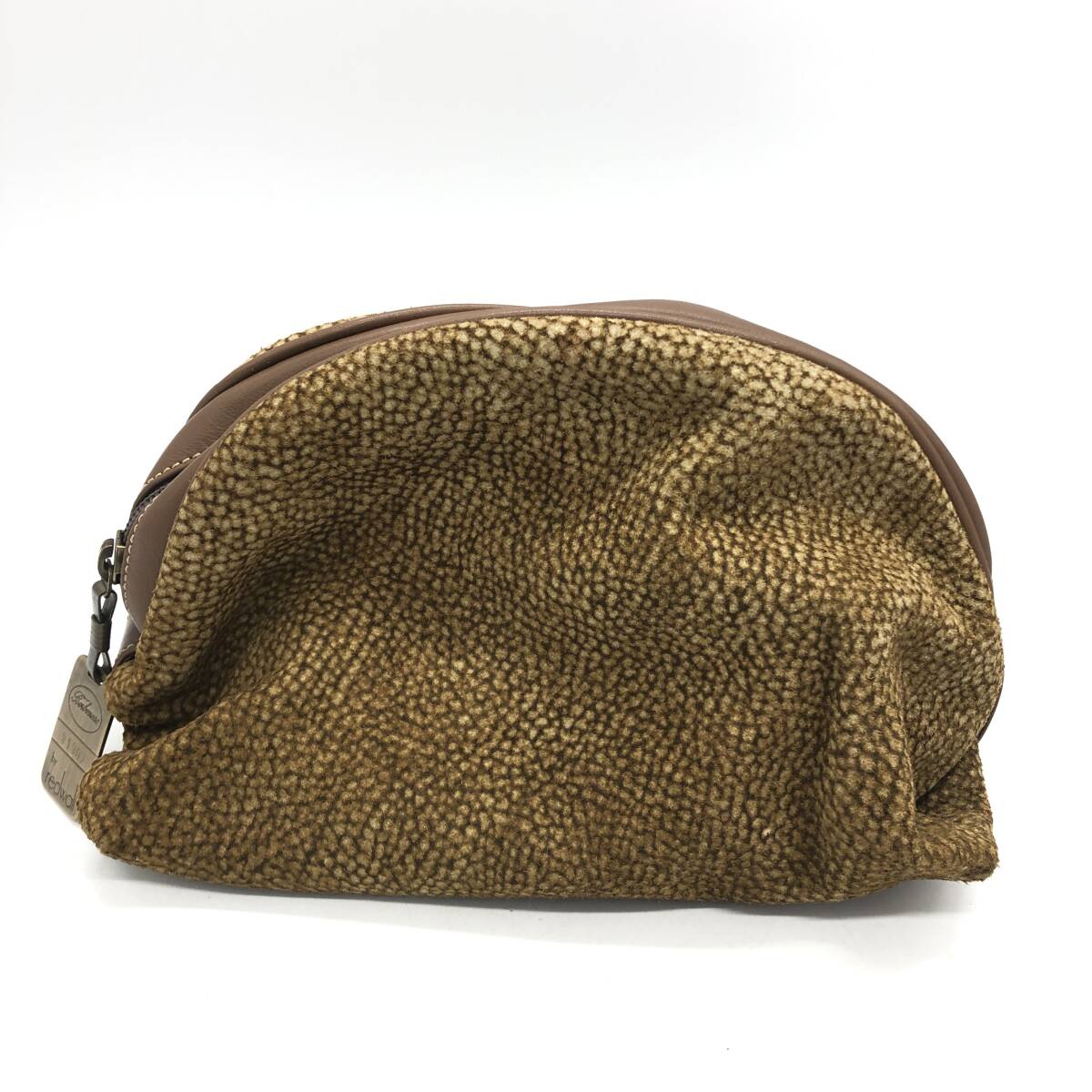 | 保管品 BORBONESE ボルボネーゼ redwall ドーム型 ポーチ クラッチバッグ ブラウン系 うずら柄 | ||