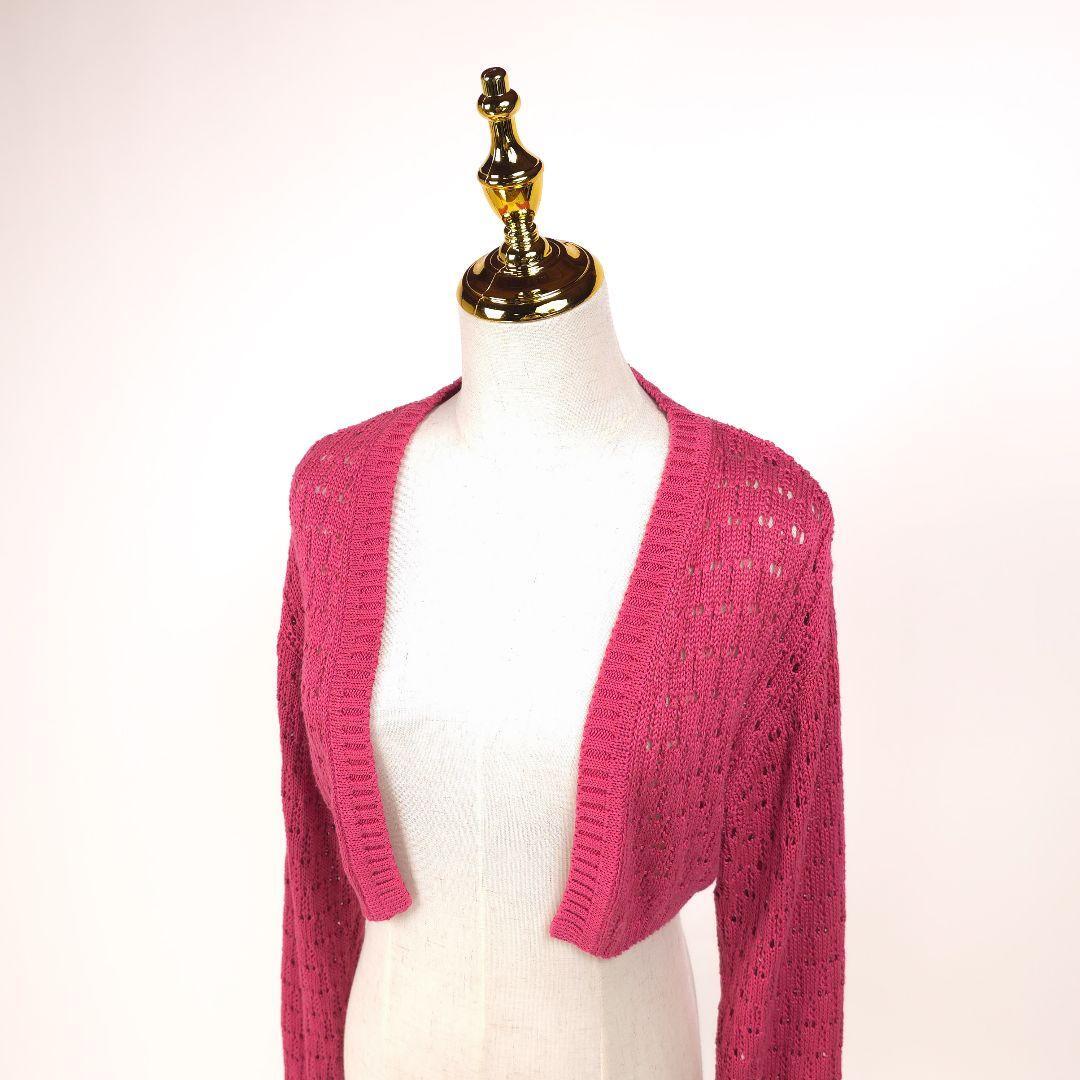 透かし編みの上品なデザインで、ワンピースやドレスに羽織れば華やかなアクセントに。