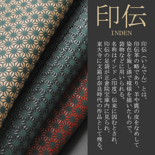 商品名:日本製  鹿革  漆 印伝  麻の葉柄  男女兼用 長財布