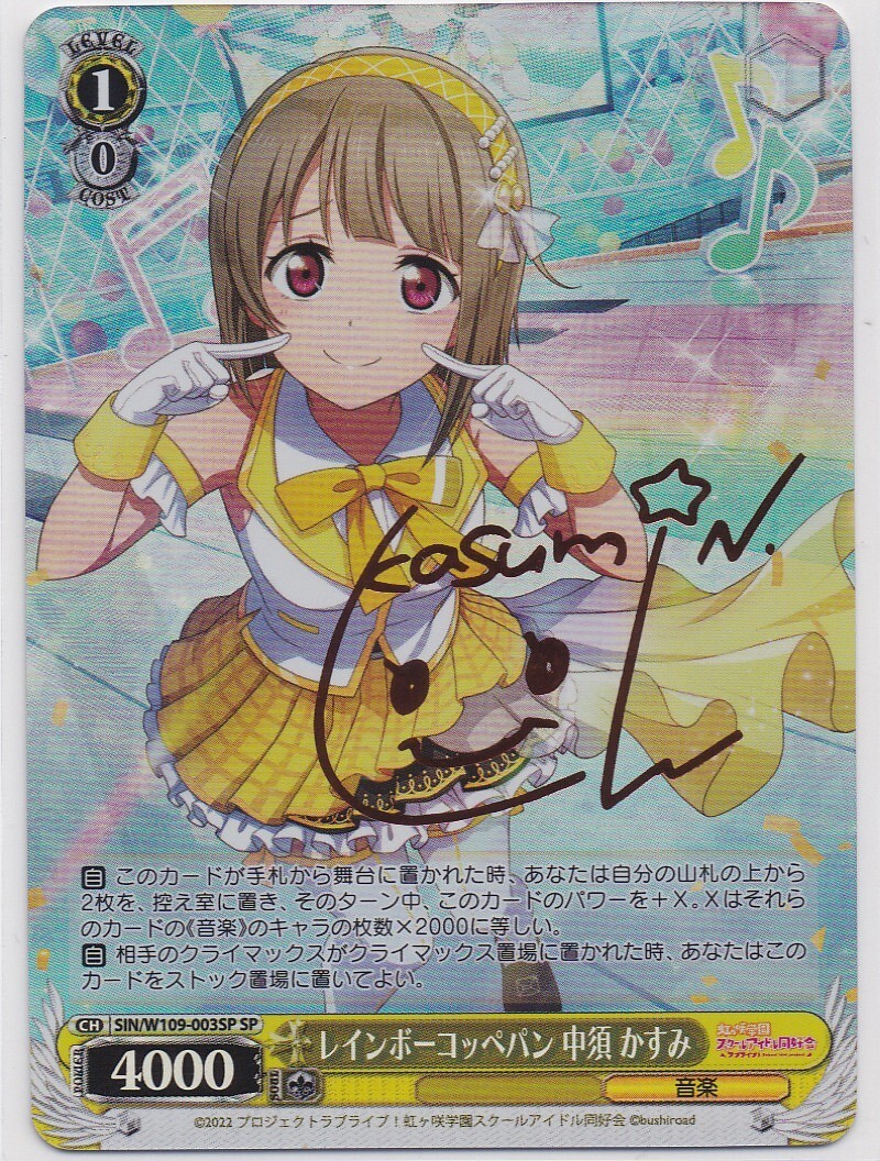 2025.9 状態A ヴァイスシュヴァルツ SIN/W109-003SP[SP]:(ホロ)レインボーコッペパン 中須 かすみ(キャラクターオレンジ箔押しサイン入り) | |