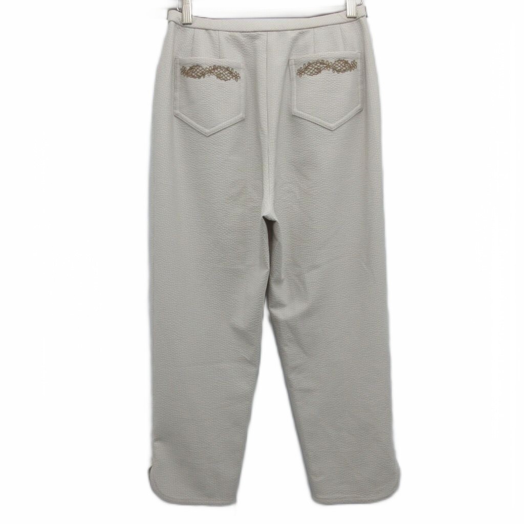 レリアン Leilian スラックス イージーパンツ ストレッチ レース 刺繍 11 L グレー ■YHS4 レディース