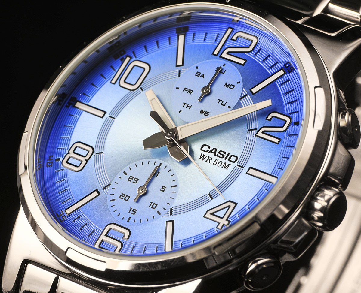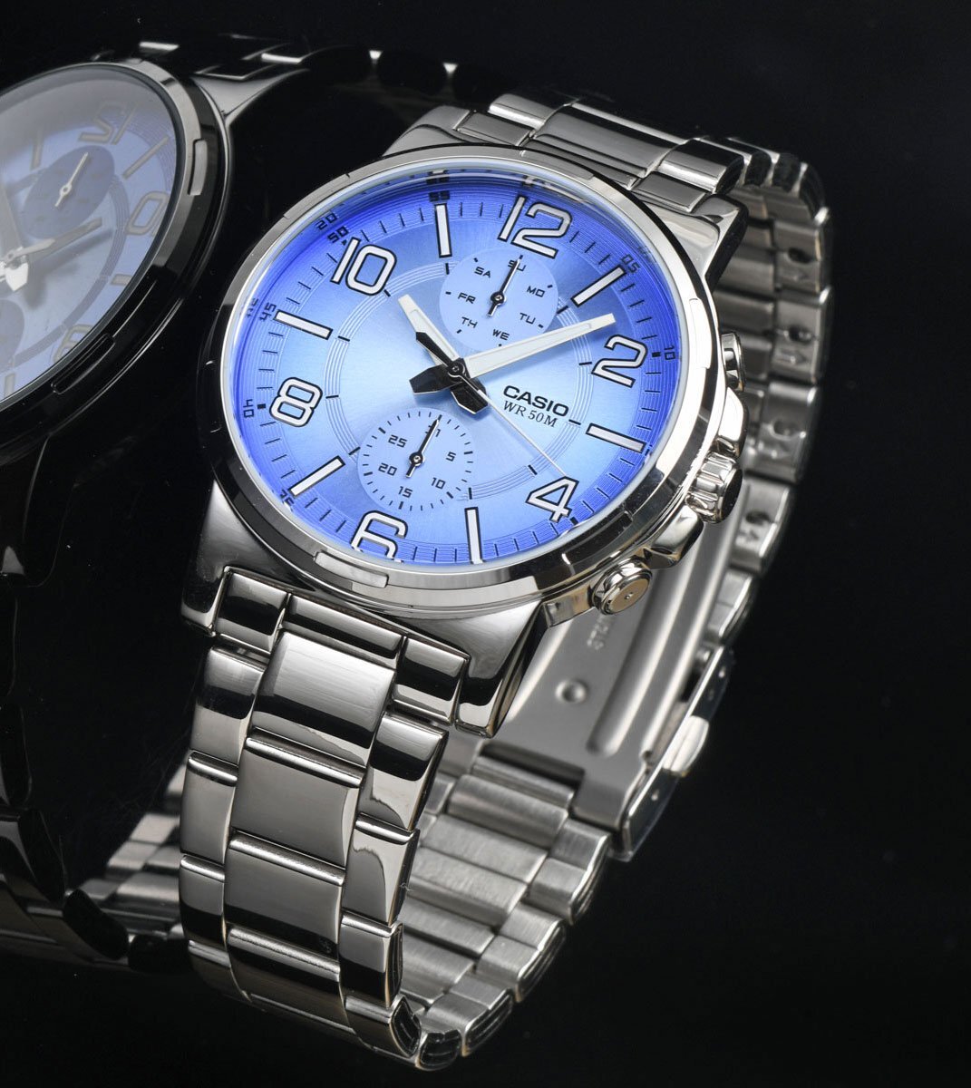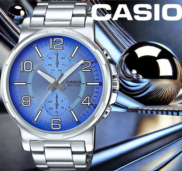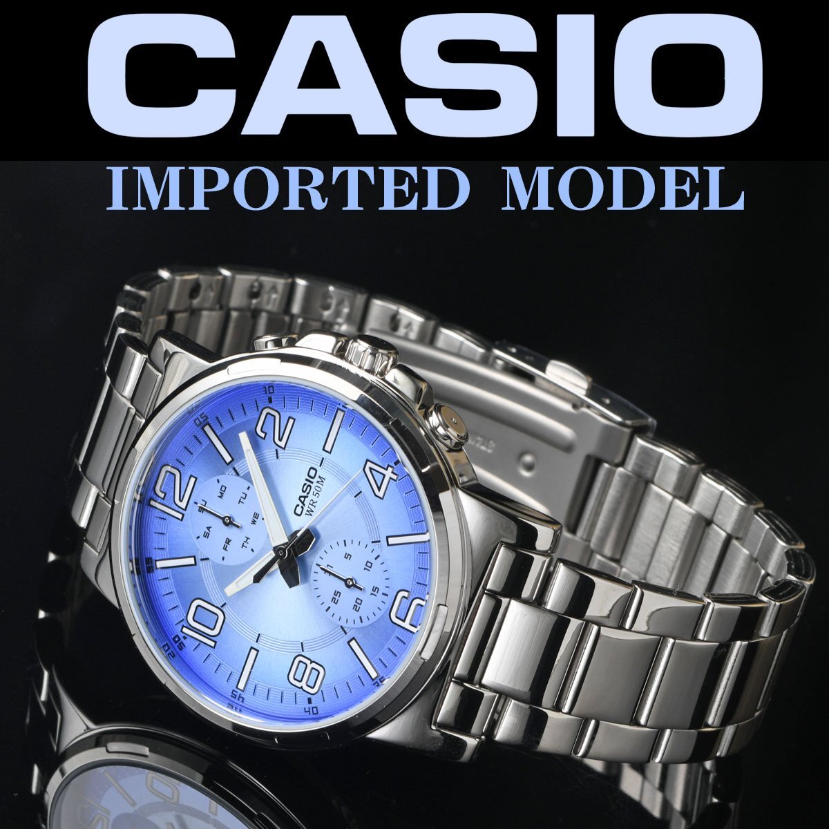 逆輸入カシオ 入手不可能 新品 美しく磨き上げられた鏡面加工ステンレス 鮮やかなスカイブルー 50m防水 腕時計 未使用 CASIO メンズ