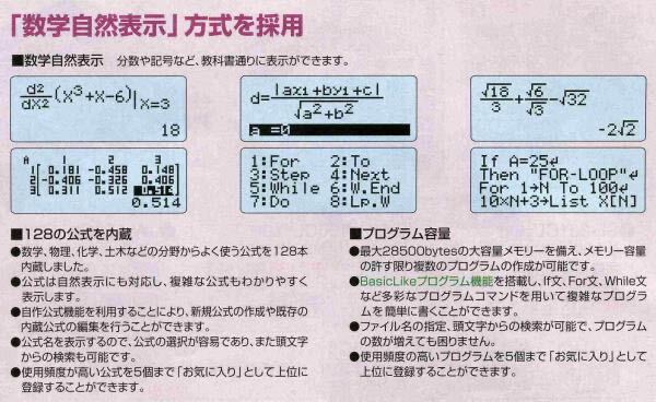 電卓本体はfx‐4850Pの後継機としてH18.9月発売の機種です。詳細なスペックはカシオホ-ムページを見ていただいたほうがよいと思います。