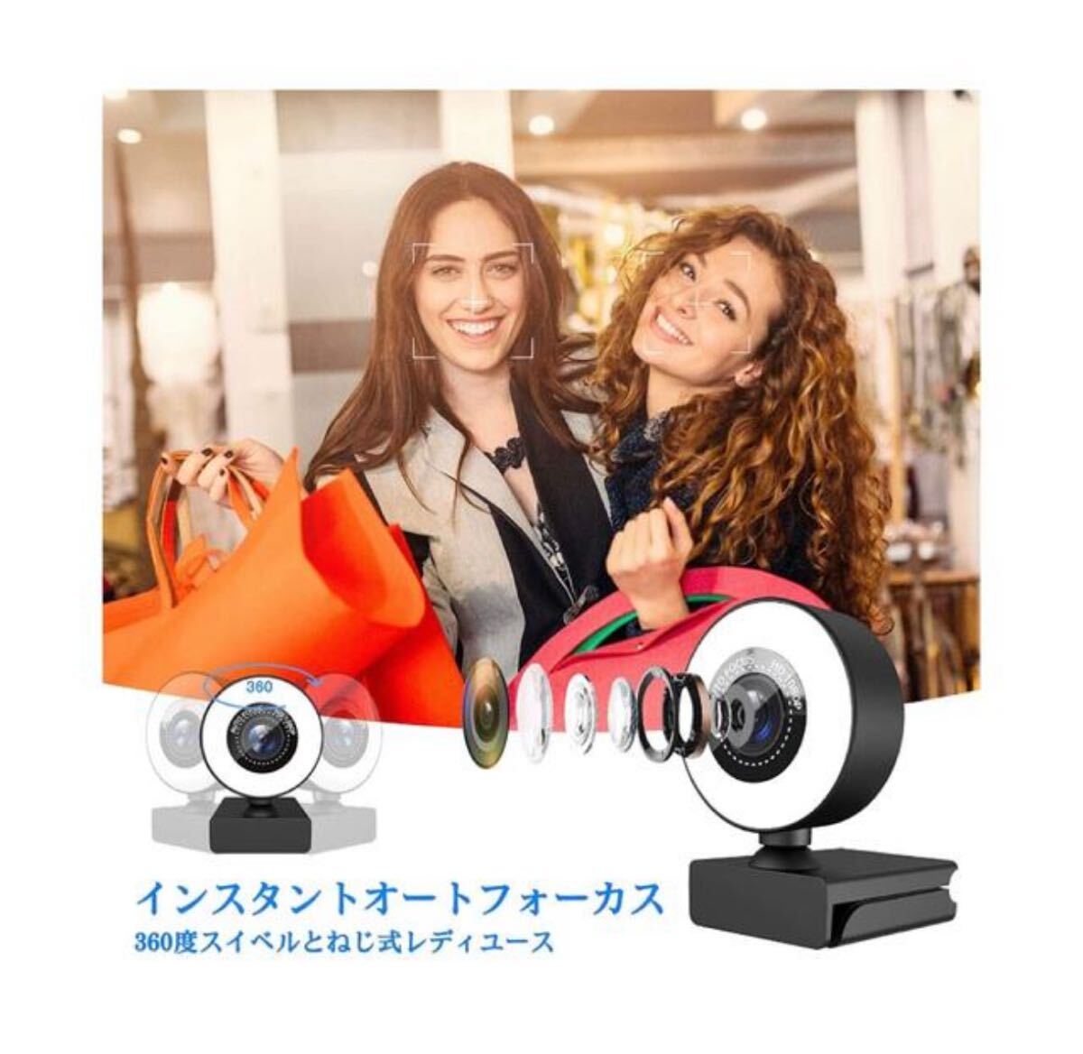 webカメラ オートフォーカス 美顔機能 ウェブカメラ リングフィルライト付き