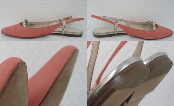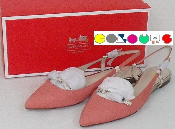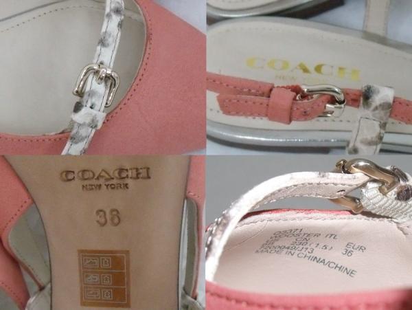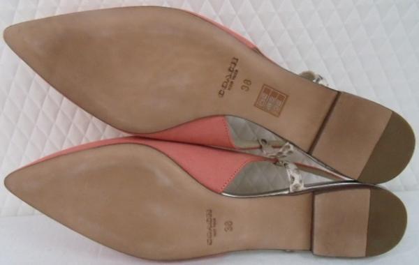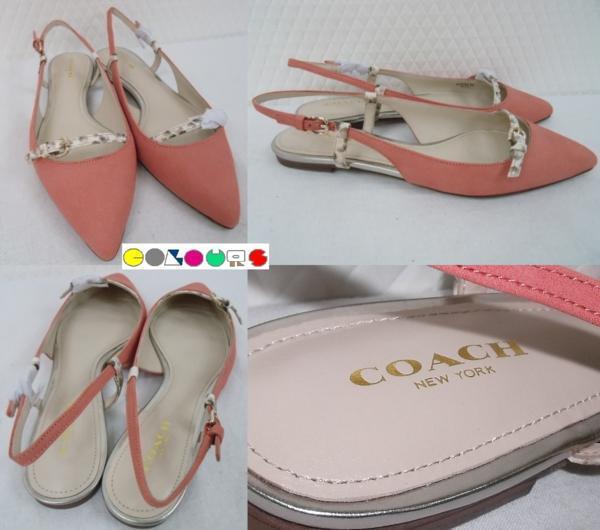 〔COLOURS〕展示品■ピンクスウェード&ホワイトパイソン■ベルト装飾■バックストラップ付きローヒールサンダル■サイズ36■COACH
