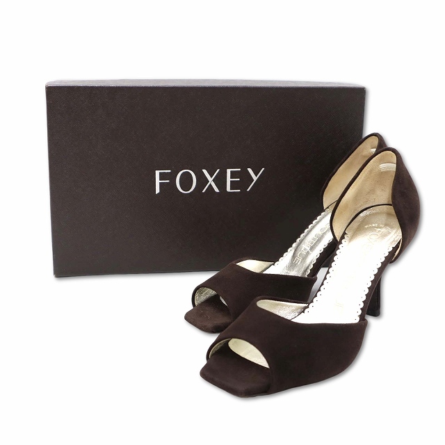 フォクシー ブティック FOXEY BOUTIQUE オープントゥ ヌバック ハイヒールパンプス CAMOSCIO MARRONE ダークブラウン 34.5 (22.5cm相当) レディース