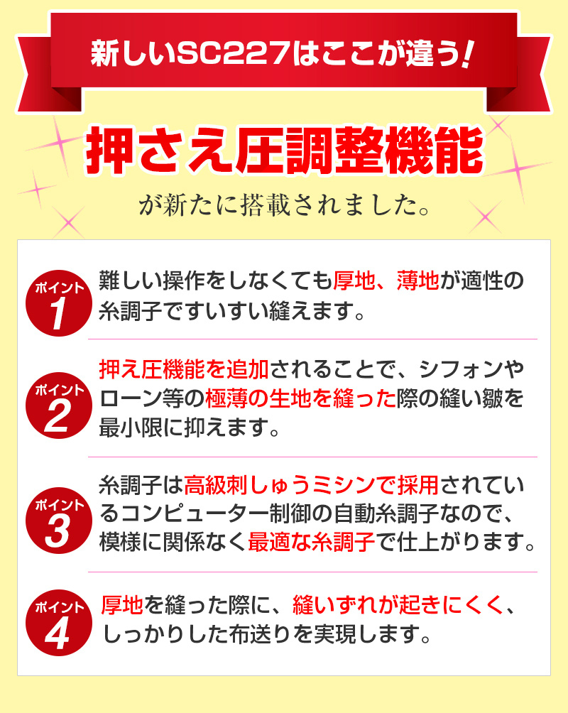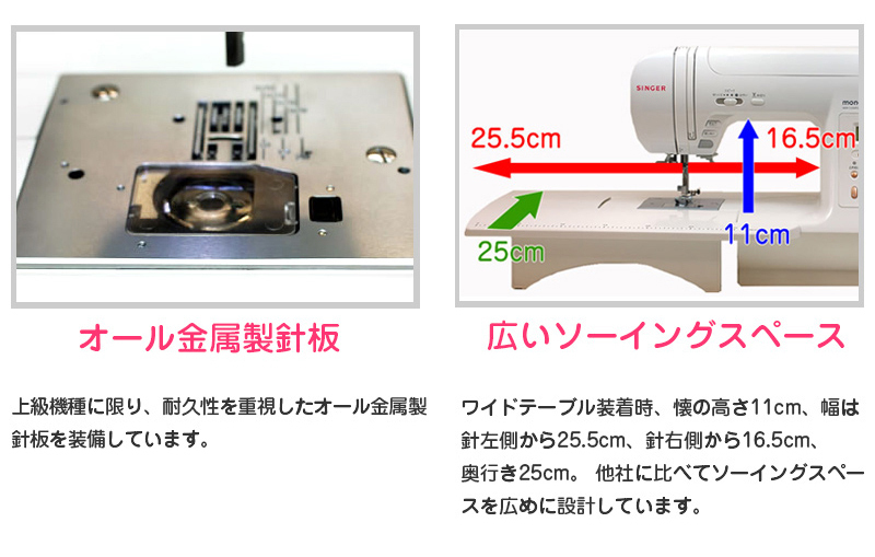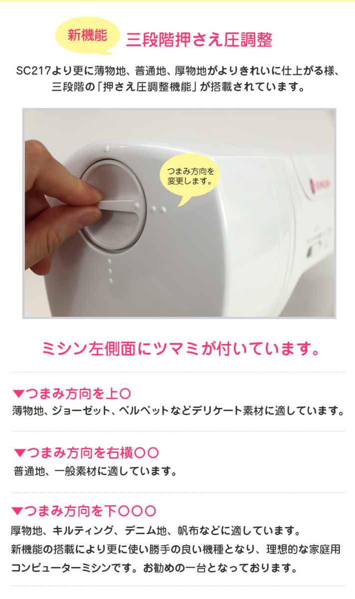 【新品・5年保証】シンガーコンピューターミシン モナミヌウプラスSC227 ワイドテーブル・白フットコン付