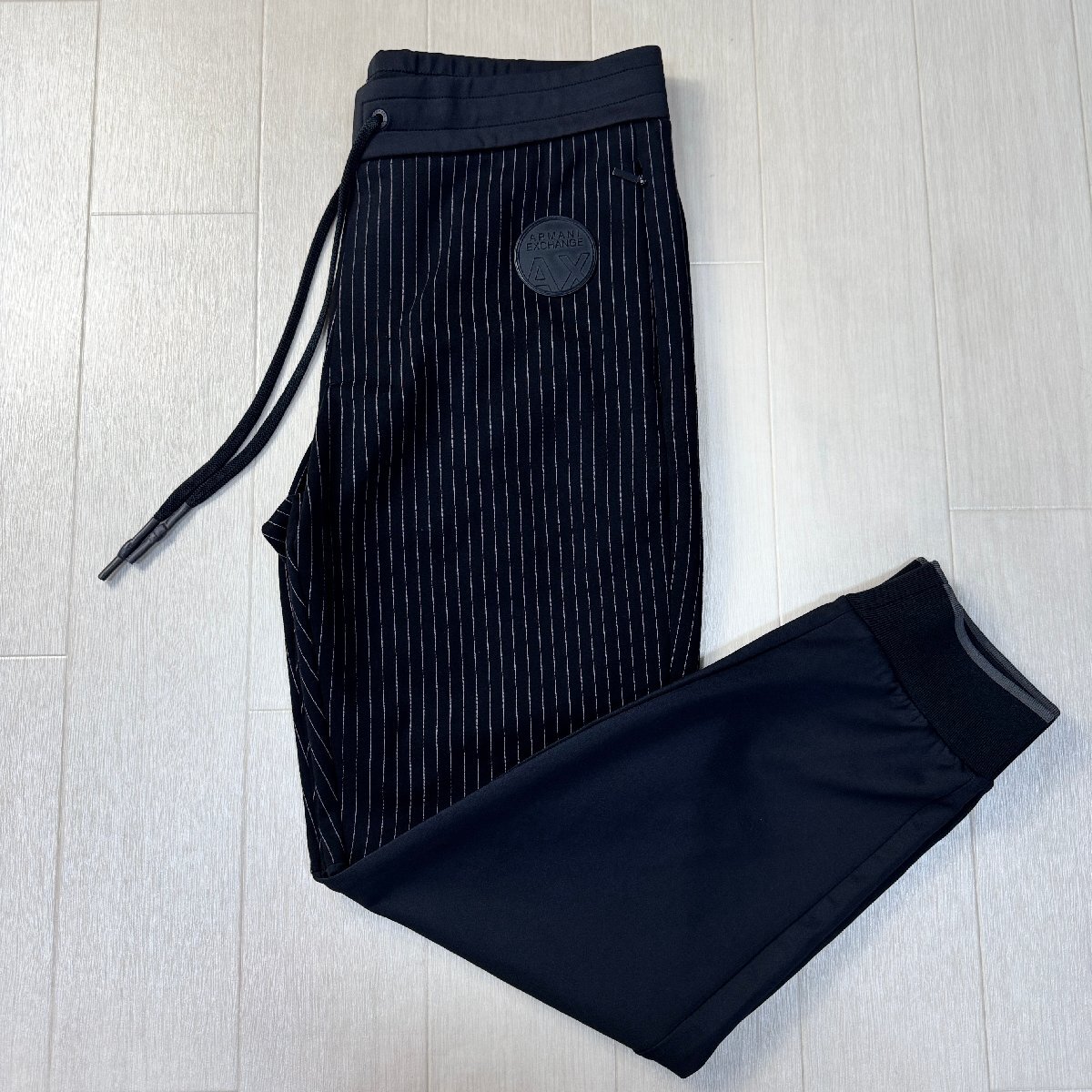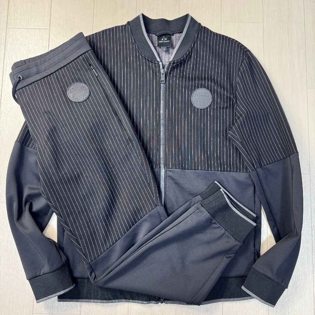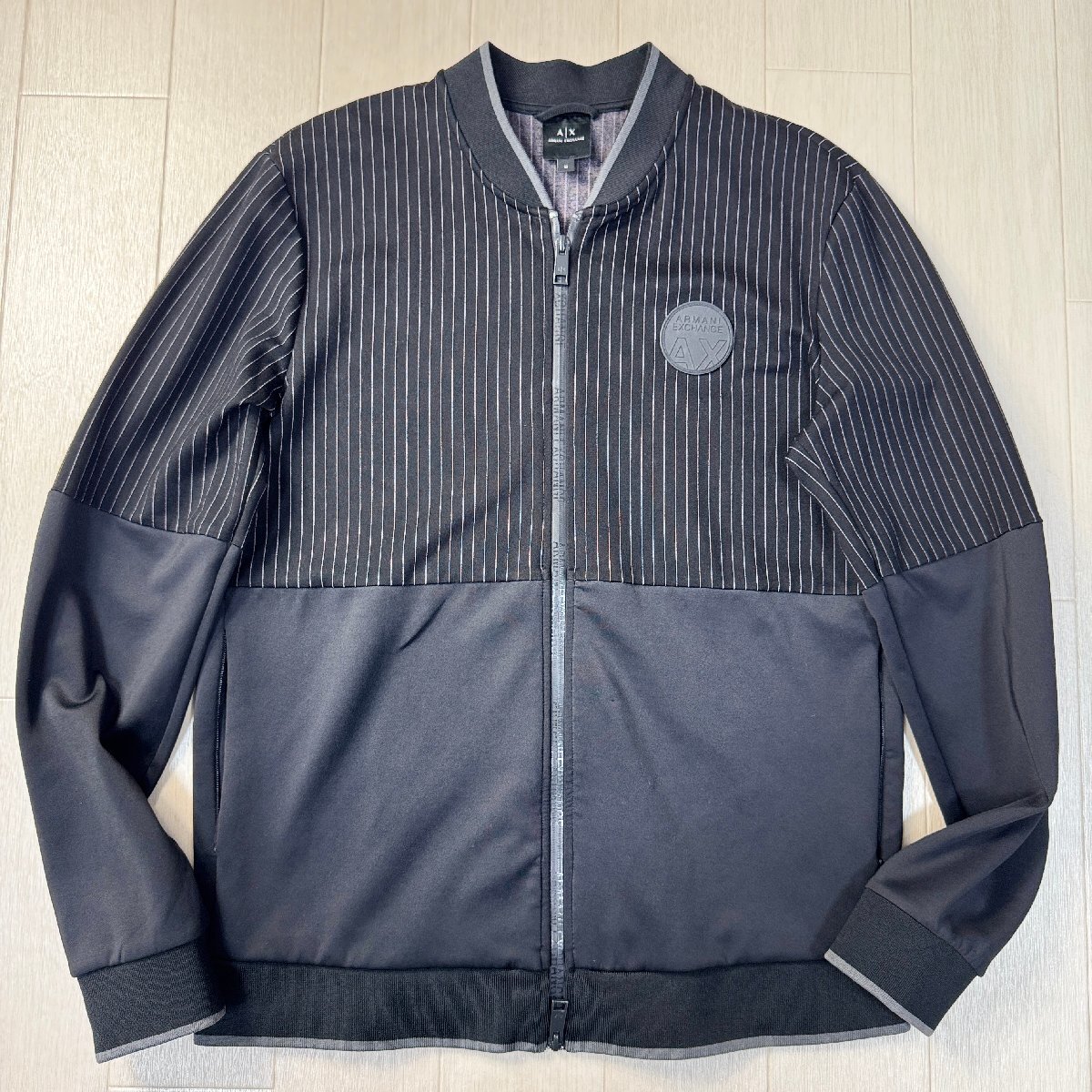 美品/Mサイズ★アルマーニ/ARMANI EXCHANGE ラバーロゴワッペン カジュアルセットアップ ジャケット パンツ ジャージ 異素材切替 メンズ 黒