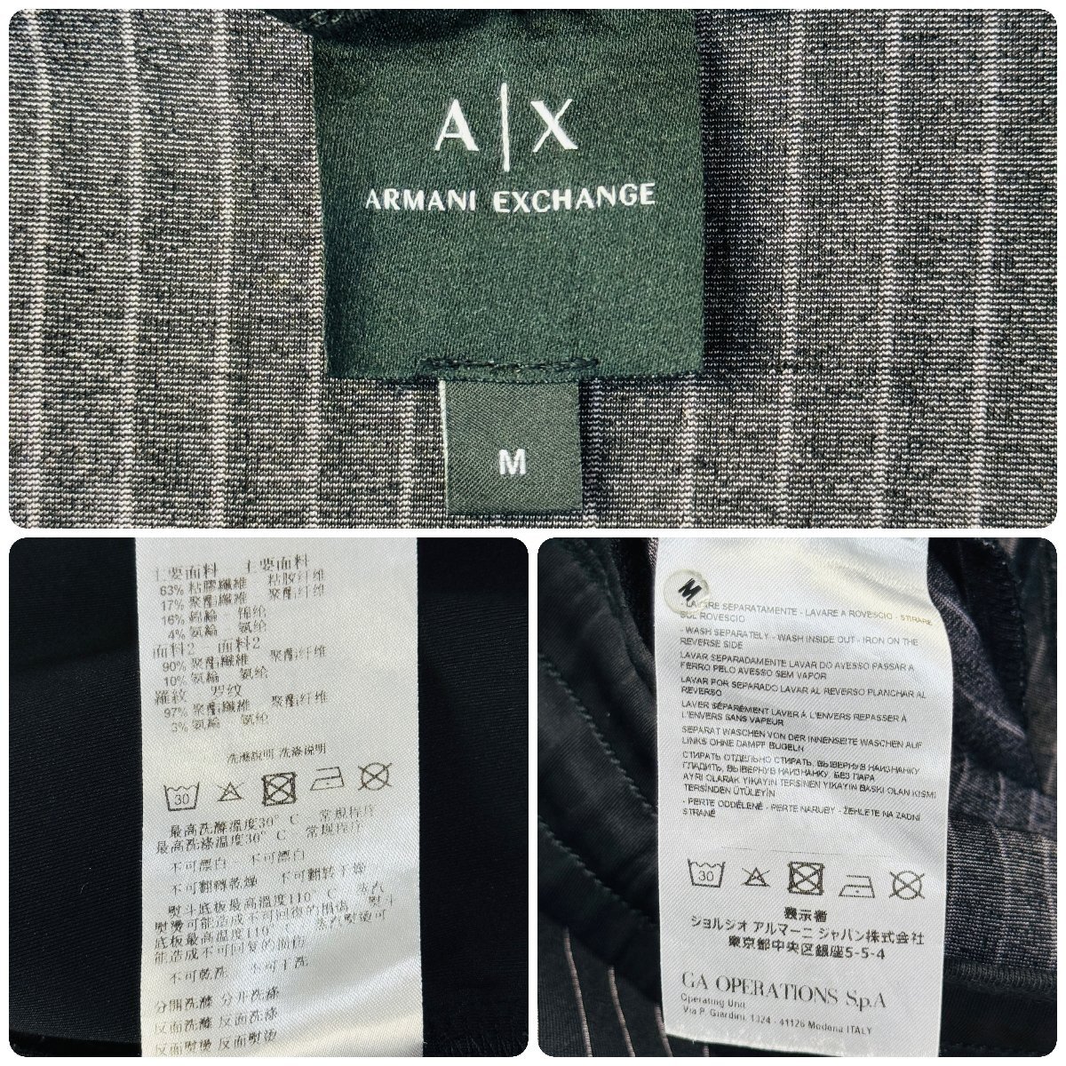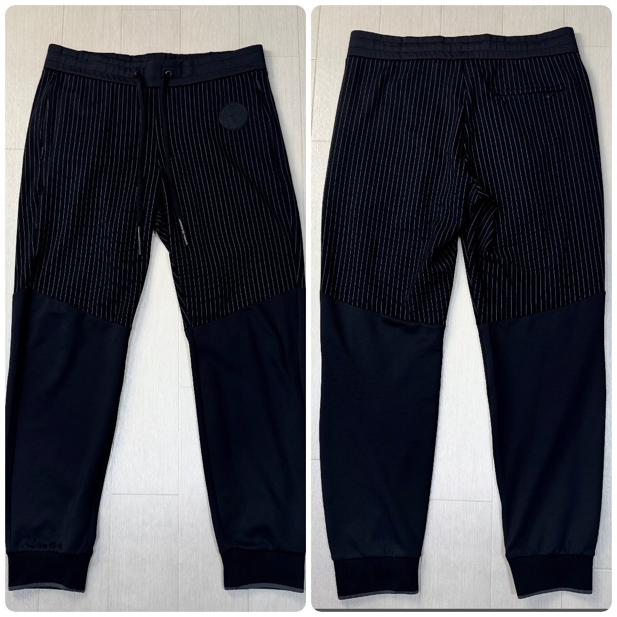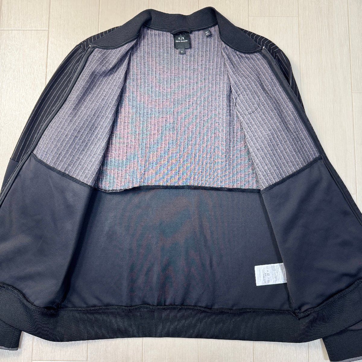 美品/Mサイズ★アルマーニ/ARMANI EXCHANGE ラバーロゴワッペン カジュアルセットアップ ジャケット パンツ ジャージ 異素材切替 メンズ 黒