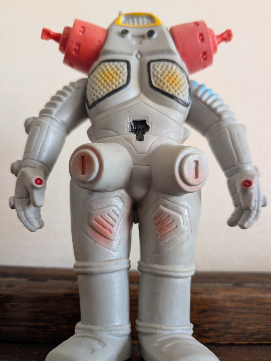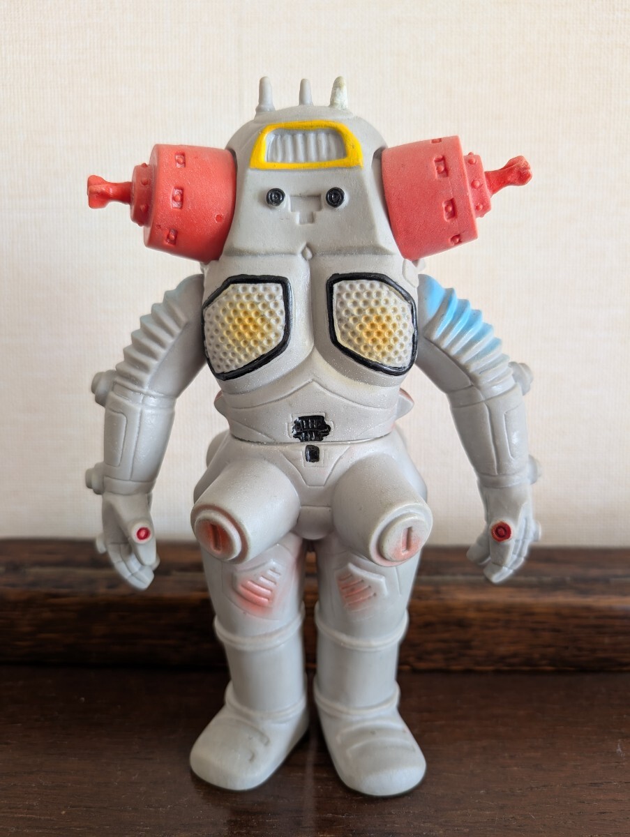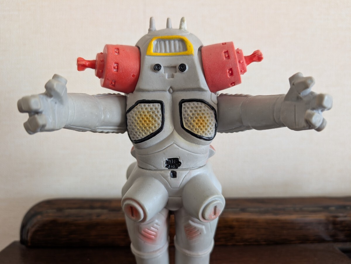 ご覧頂き有難うございます。15年程前にイベントにてコレクターから入手したモノになります。キングジョーあるあるですが、当初から3本アンテナの向かって右端が欠損してしまったという事で補修されていますので画像を参照下さい。その他は間着も固く問題はありません。