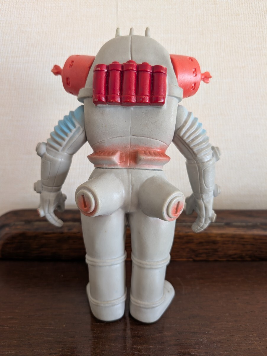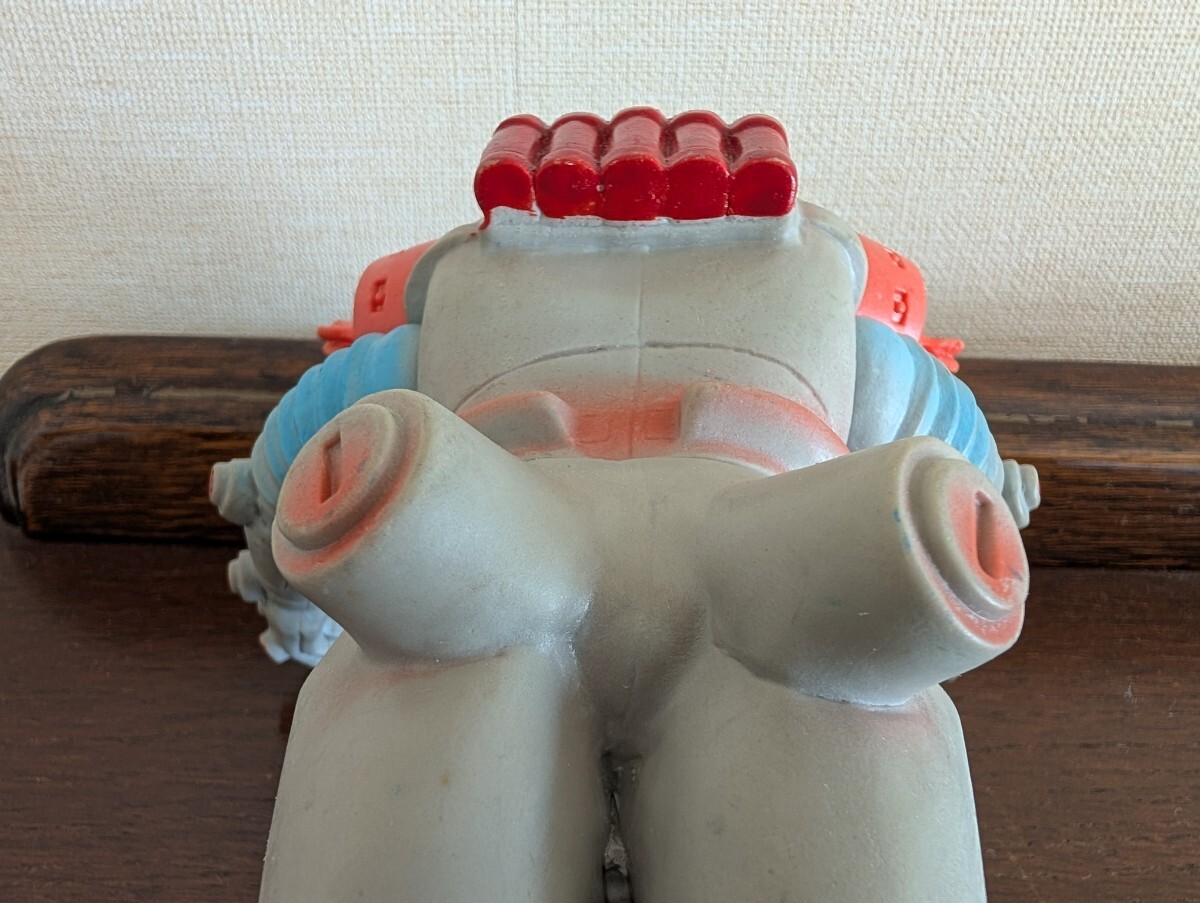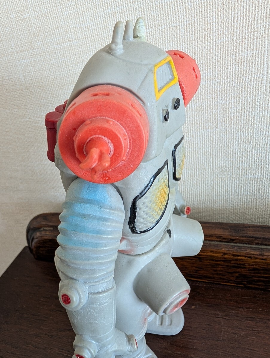 ご覧頂き有難うございます。15年程前にイベントにてコレクターから入手したモノになります。キングジョーあるあるですが、当初から3本アンテナの向かって右端が欠損してしまったという事で補修されていますので画像を参照下さい。その他は間着も固く問題はありません。