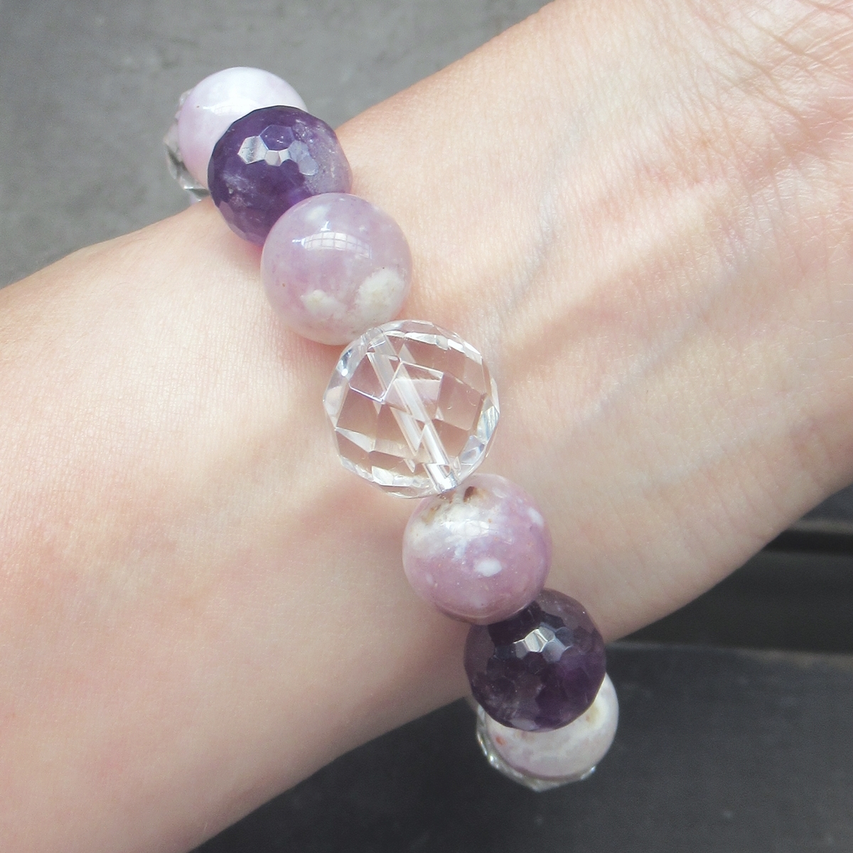 ティファニーストーンxアメジストx水晶ブレスレット  天然石 パワーストーン