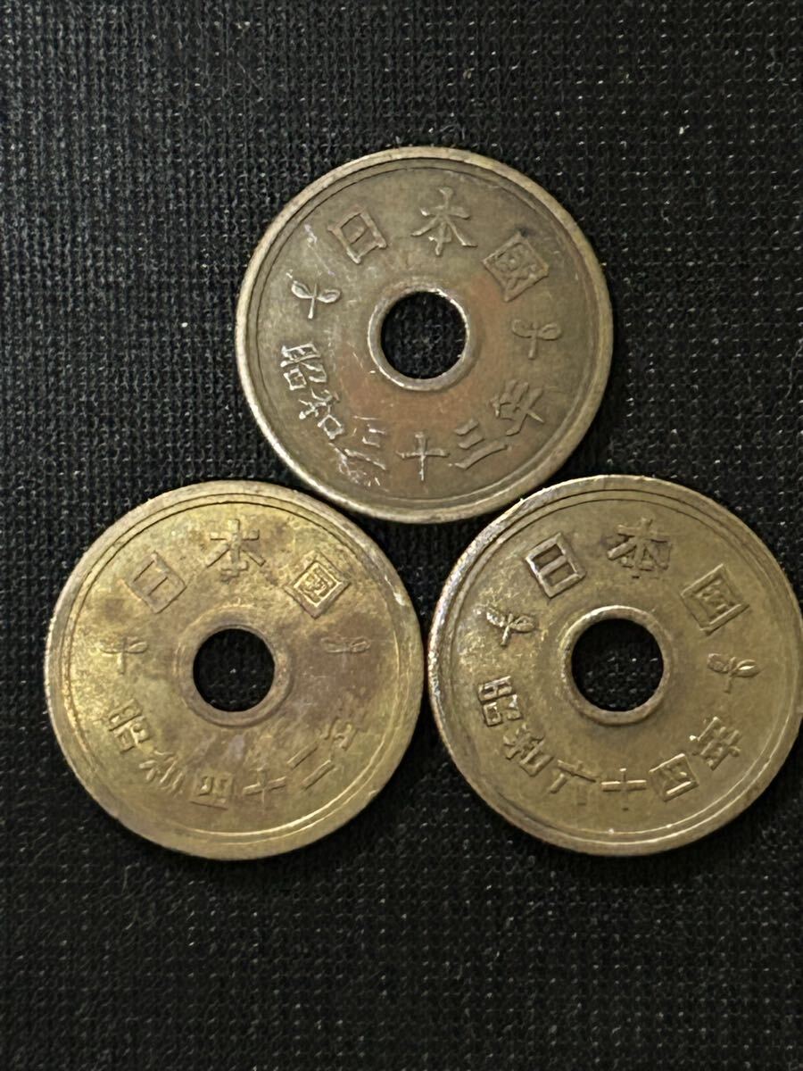 5円玉の中でも発行枚数の少ない年号3枚セットです。