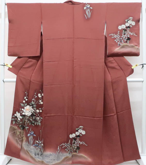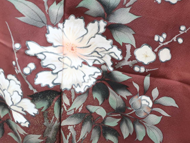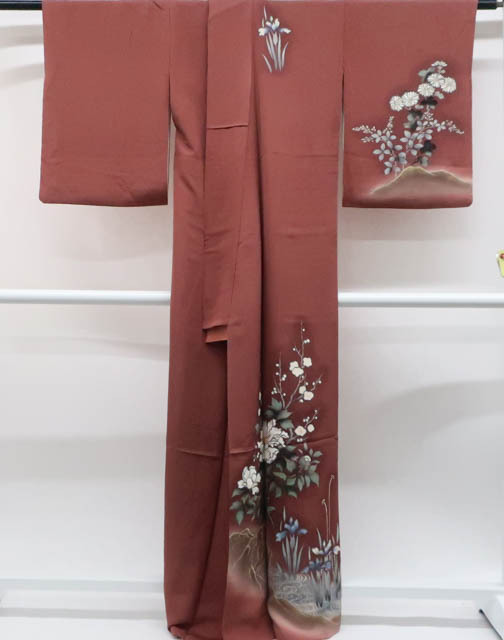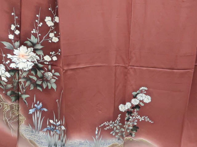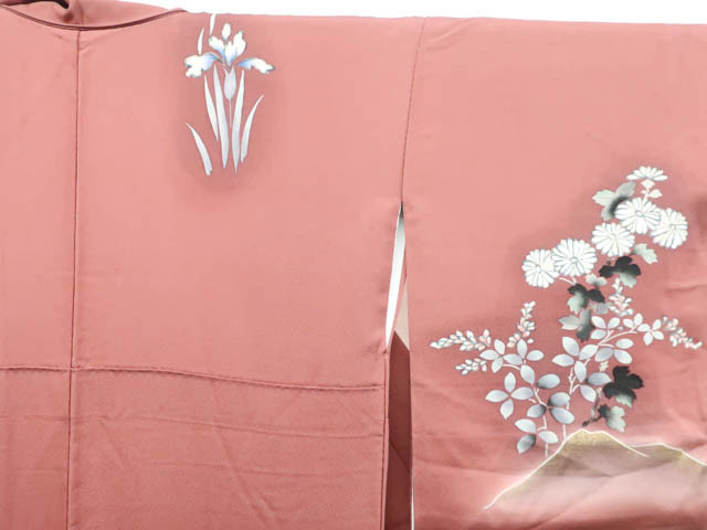 リサイクル商品のため、衿裏にしみがございますがご着用いただけると存じます。 地色はくすみピンク です。 1枚目の画像が近いお色かと思われます。 素材は正絹です。 |