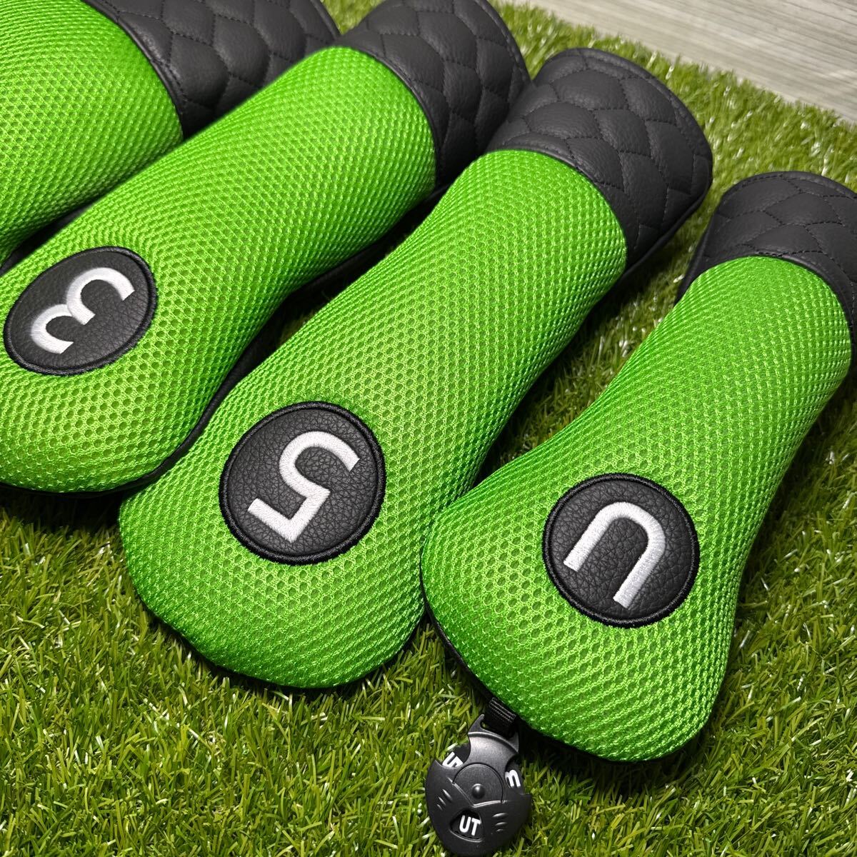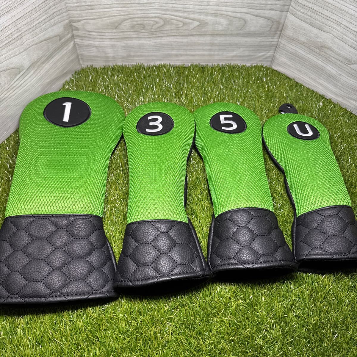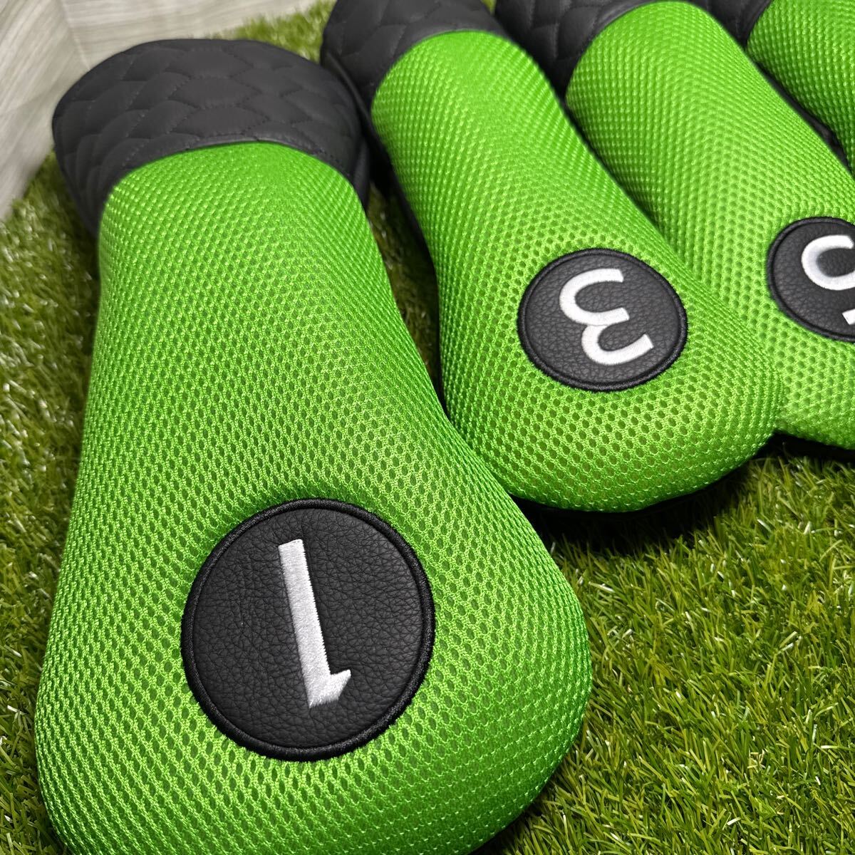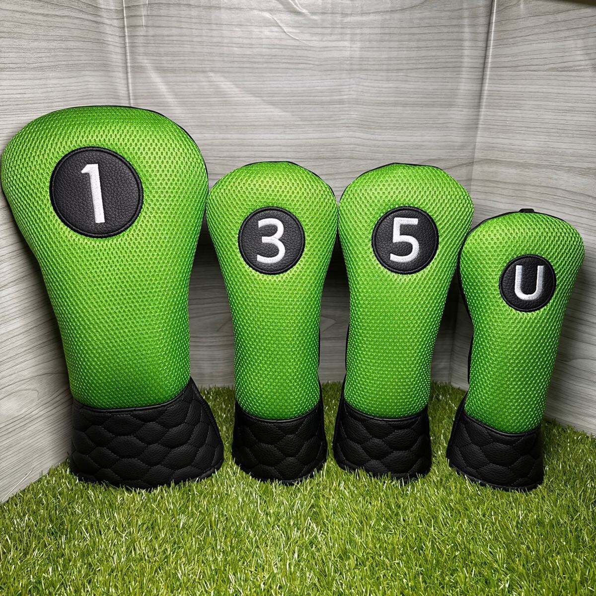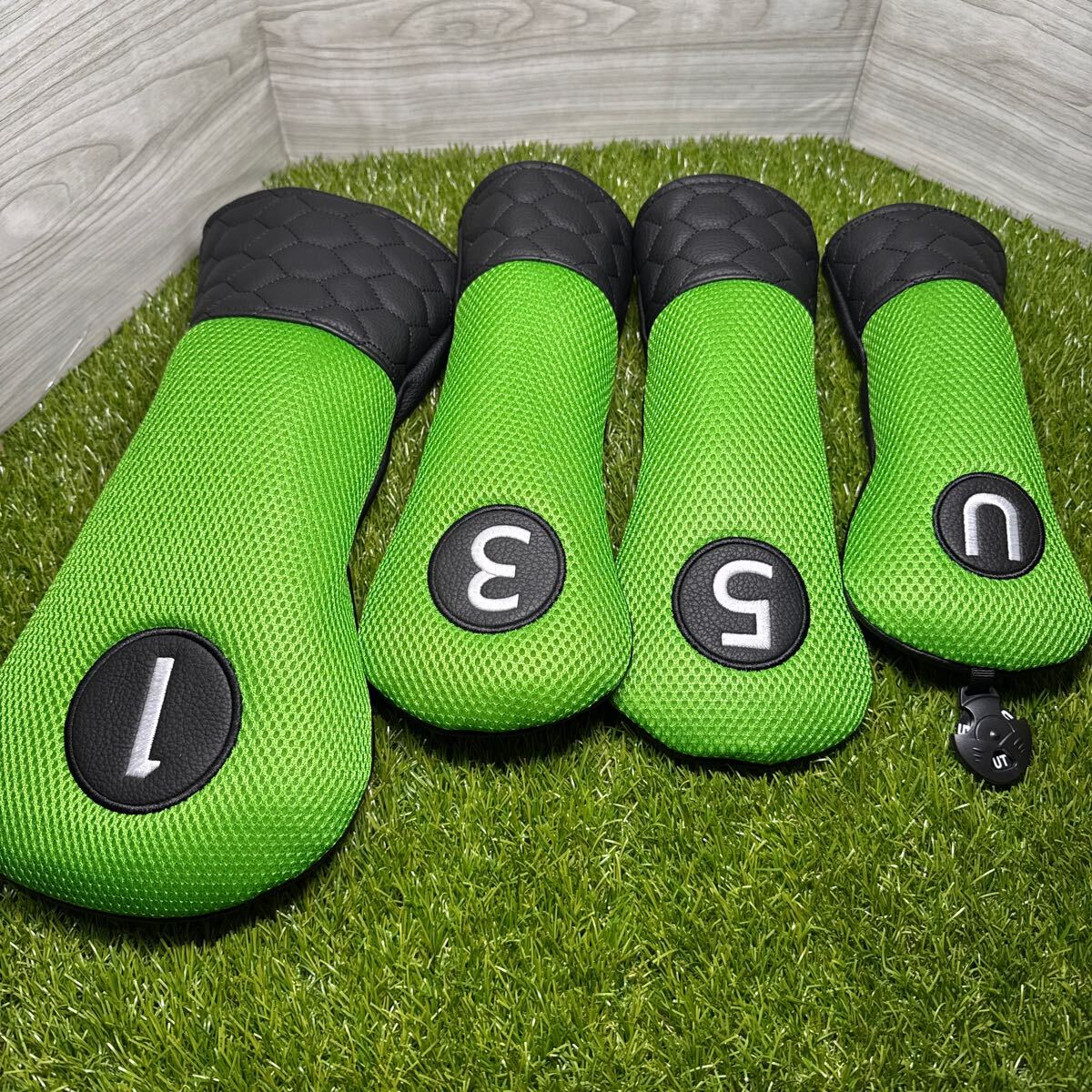 ドライバー用、フェアウェイウッド用3番5番、ユーティリティ用ヘッドカバー。