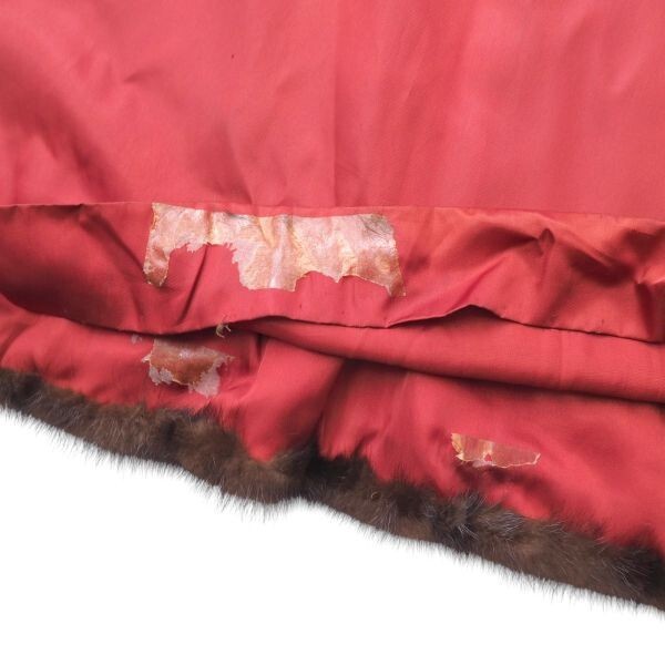 コンディション | 【コンディション詳細】 裏地全体に薄く変色や所々に薄汚れ、また画像8枚目でご確認いただけますように裏地ふらし仕立ての紐が三ヶ所切れており両面テープで貼った跡などございますので、ご必要に応じて補強をお願いいたします。 他毛皮面には支障になるようなダメージは見られません。 | ||