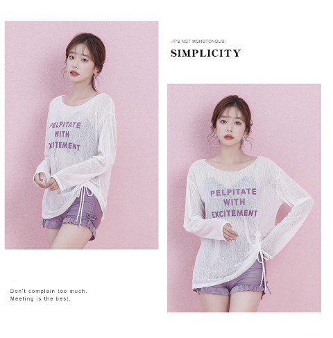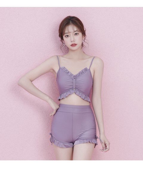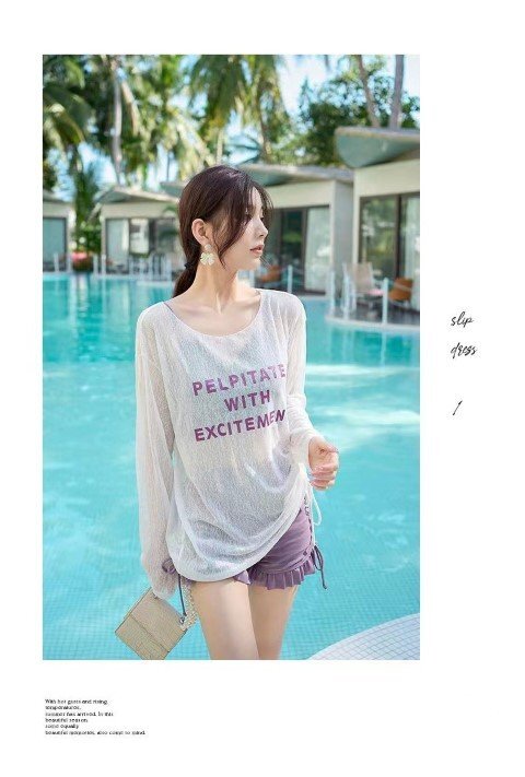 ・セパレート水着とロゴ入りシアーロンTの3点セット。セパレート水着はフリルが効いて可愛いです。