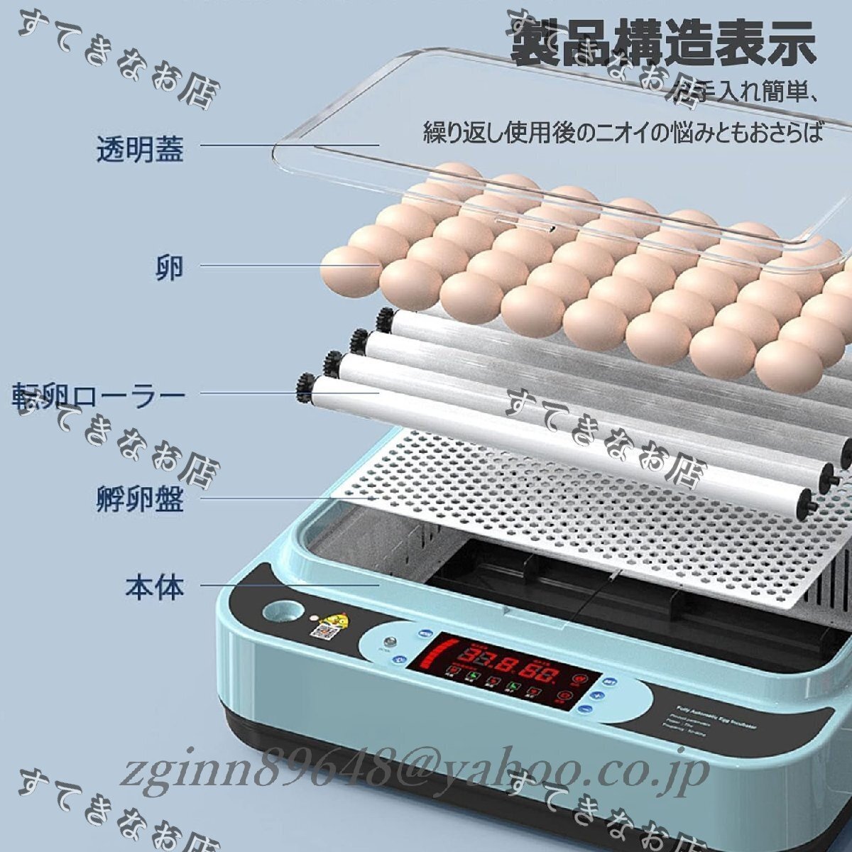 全自動孵卵器 ふ卵器 温度湿度表示 自動転卵/加湿/温度制御 LEDライト検卵装置付 二重電源 ニワトリ・ウズラ・ガチョウの卵など 56卵