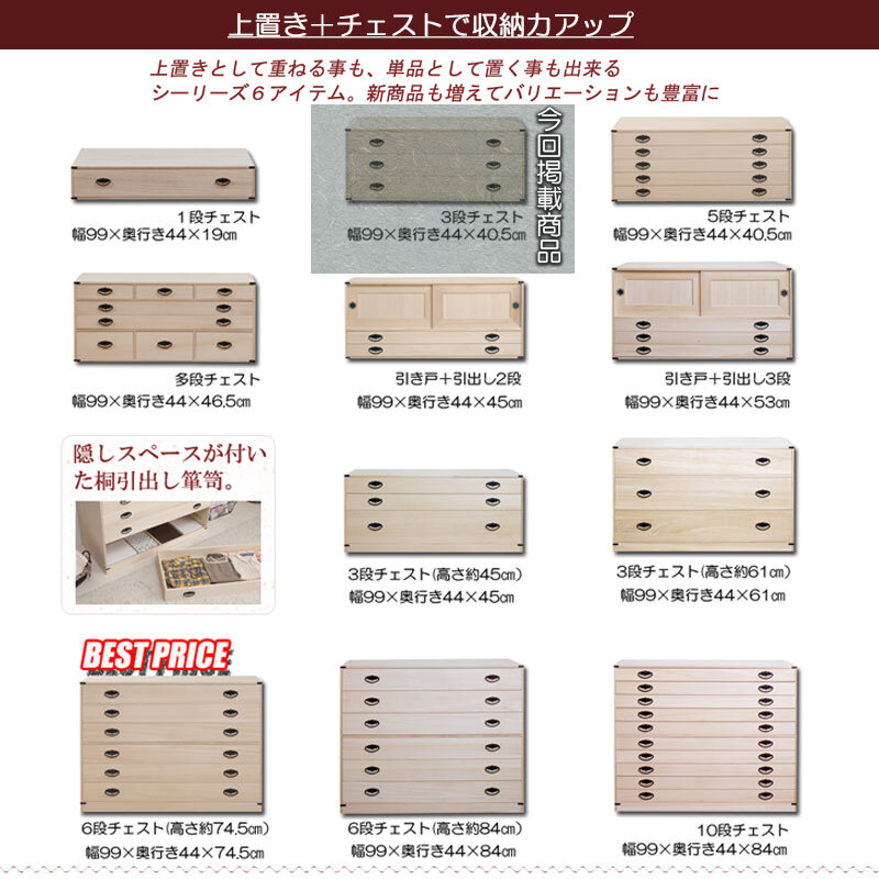 ■商品の仕様/本体:天然木(桐材)引出し底板・背板:天然木桐化粧