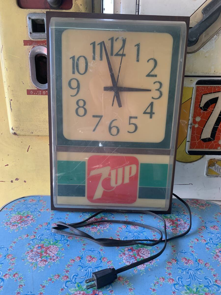 ご覧頂きありがとうございます。多分アメリカ製で60s70sだと思いますが、セブンアップの壁掛け時計になります。