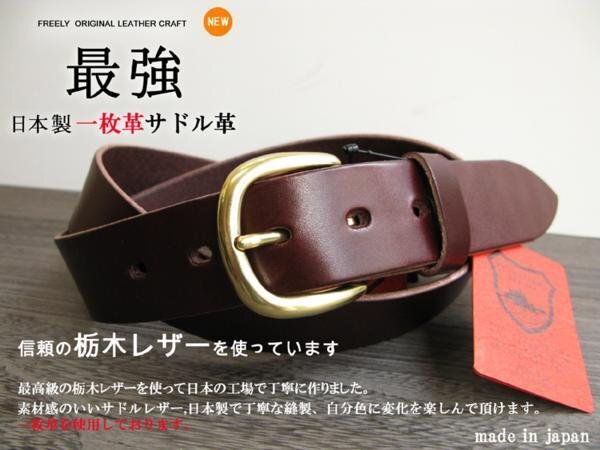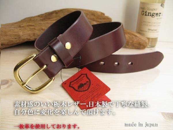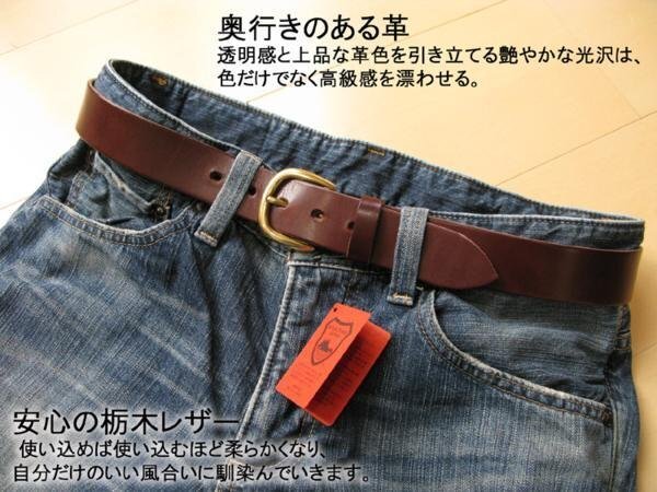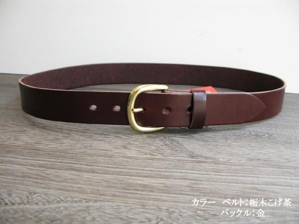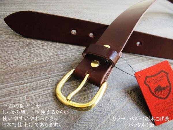 栃木レザーベルト 日本製 金色丸型バックル 栃木こげ茶 34インチ ウエスト86cm MK-KI 信頼の栃木レザー 一枚革 新品