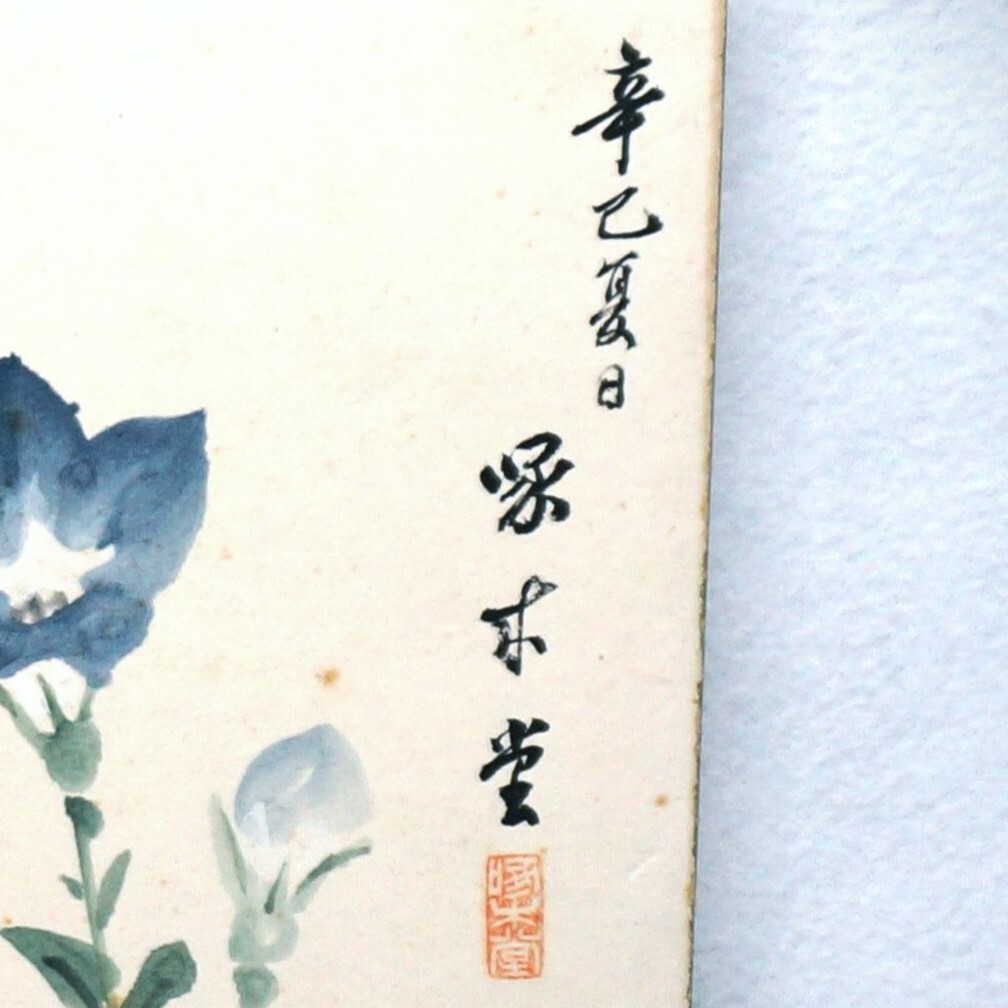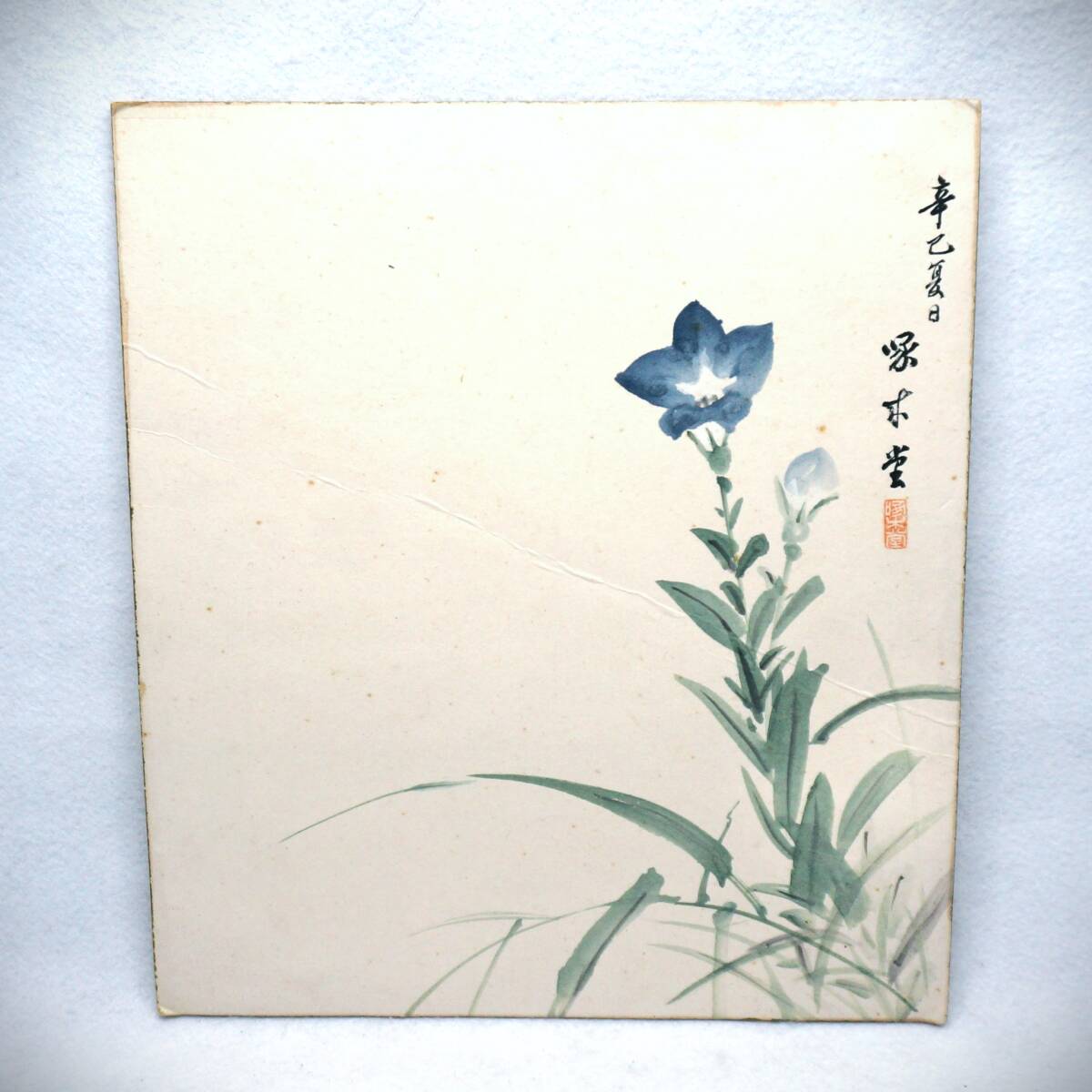 【稀少・肉筆?】『啄木堂』 作 桔梗図 色紙 - **「辛巳夏日」**落款入り!優美な水墨画?(墨彩画?)!