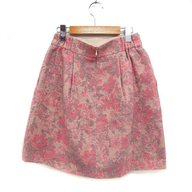 アナトリエ ANATELIER ジャガード タック フレアスカート ミニ ウール 36 ピンク /FT4 レディース