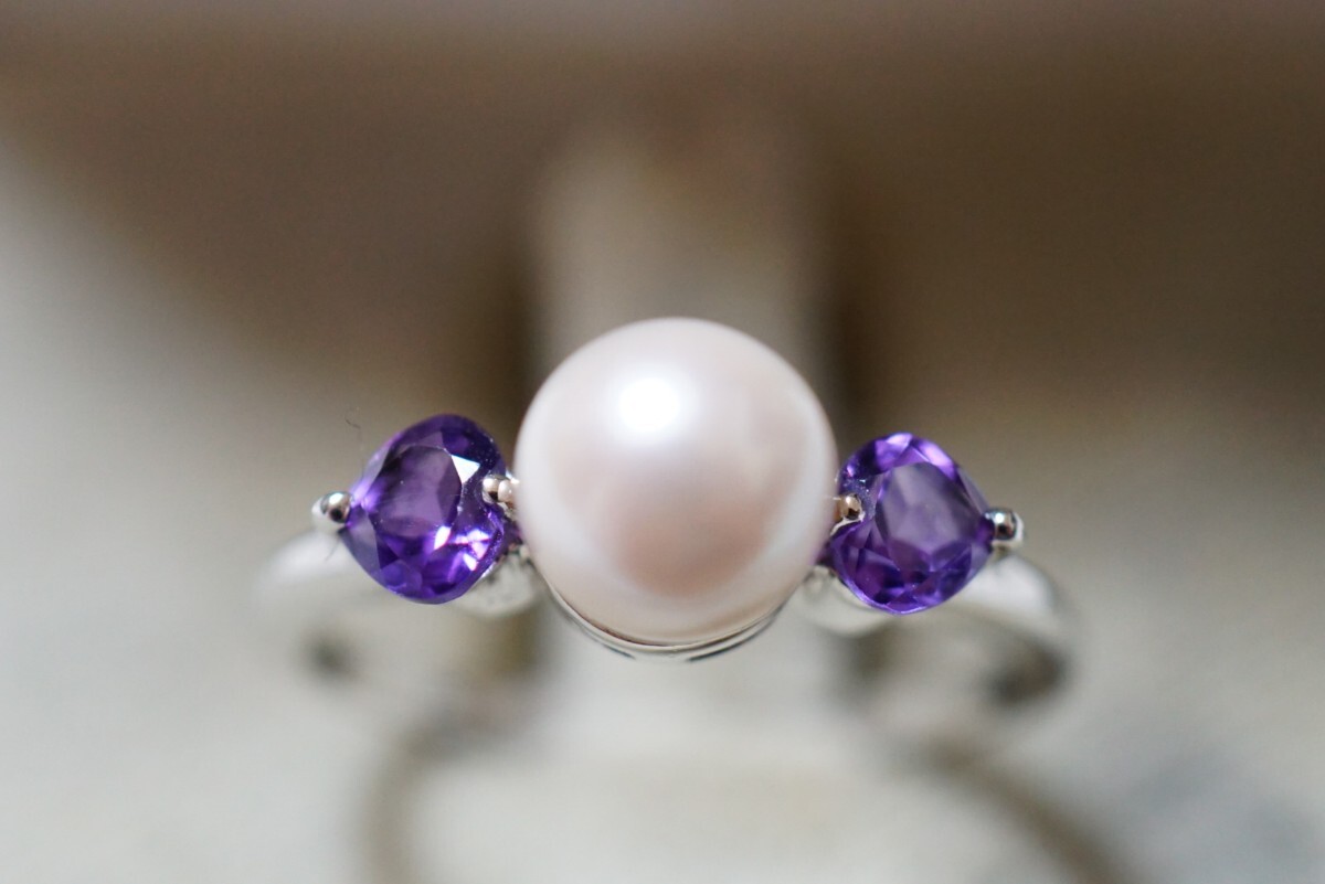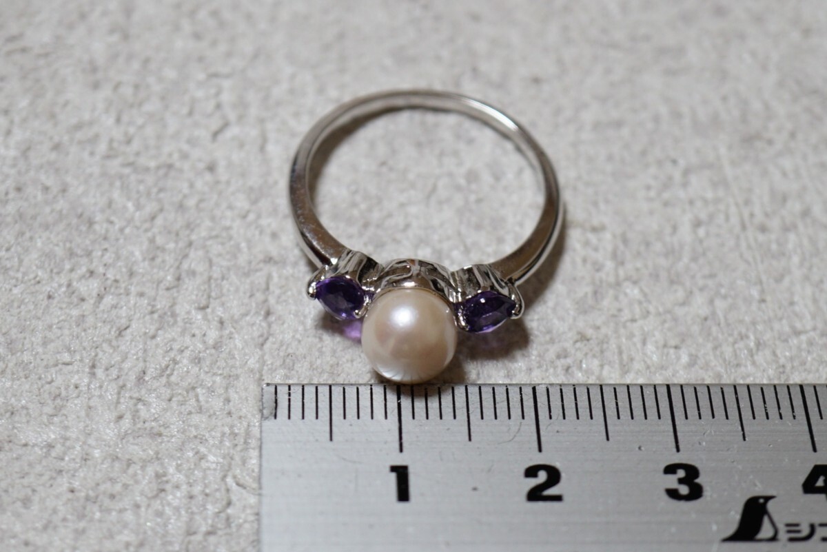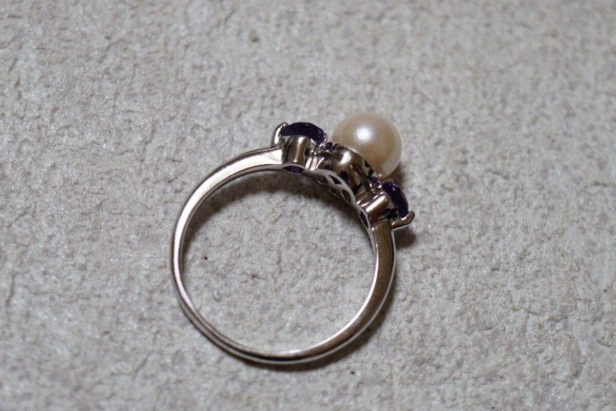 1233 IEI アコヤ真珠 アメジスト シルバー リング 指輪 ヴィンテージ アクセサリー SILVER 925F刻印 本真珠 パール カラーストーン 装飾品