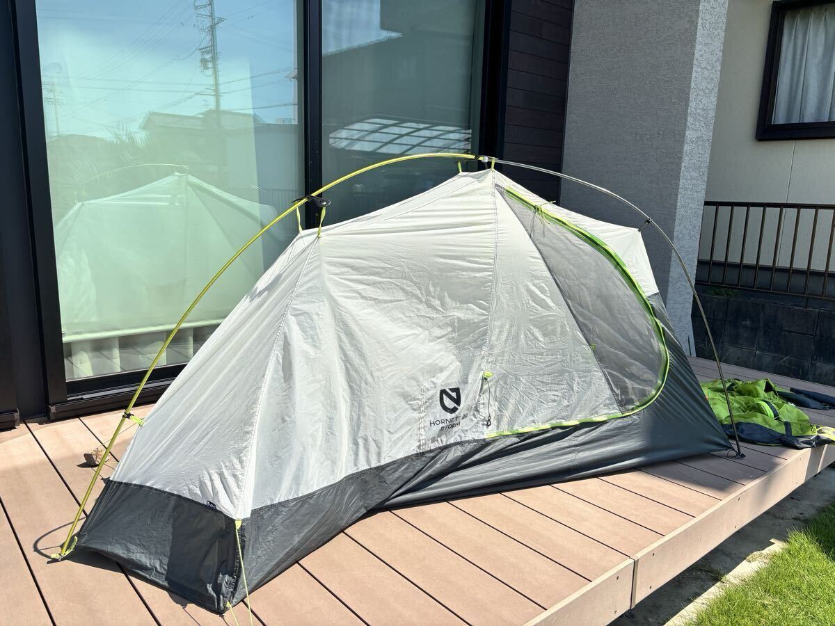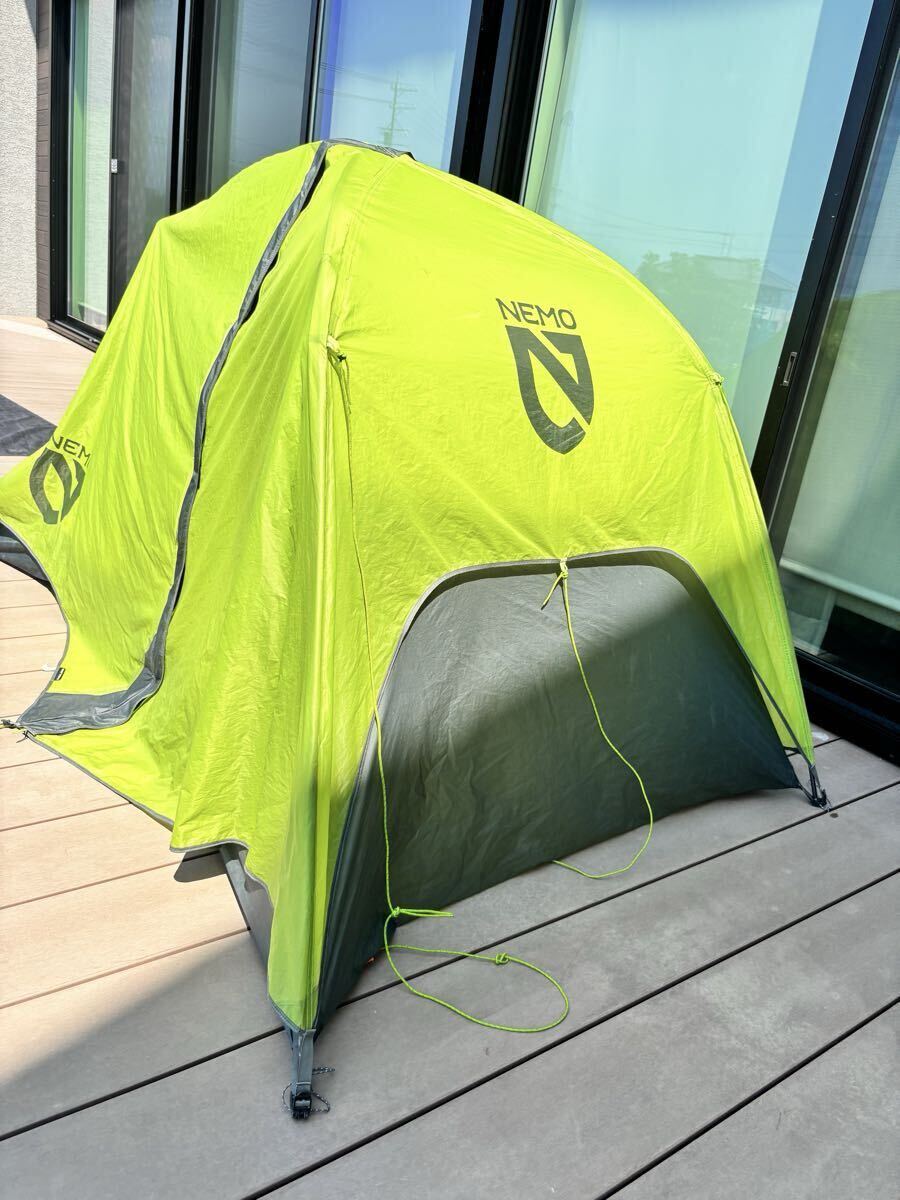 軽量で快適な2人用テント、NEMOホーネットストーム2Pは、登山愛好家にとって理想的なパートナーです。わずか940gという軽量性ながら、居住性が確保されており、ダブルウォール構造で結露しにくいのが特徴です。自立式なので設営も簡単で、コンパクトに収納可能です。