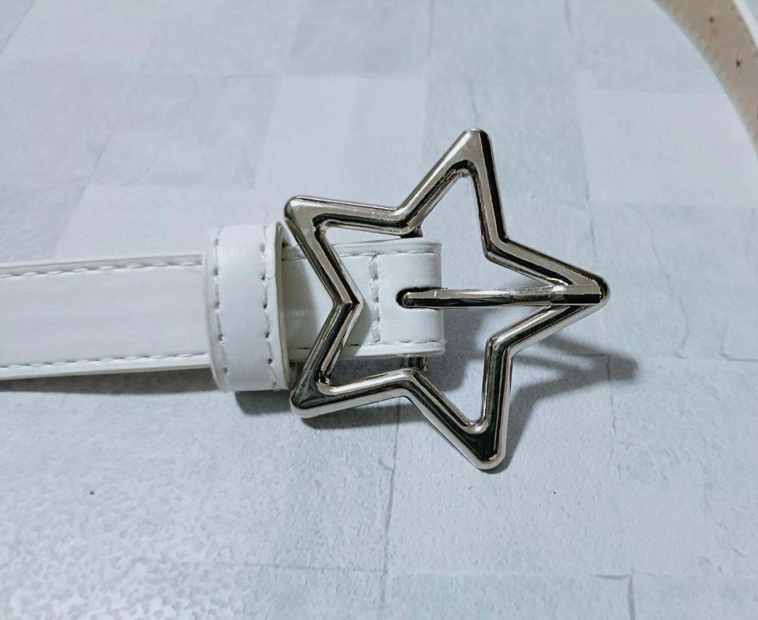 レディース キッズベルト スターバックル ガーリー ホワイト白色