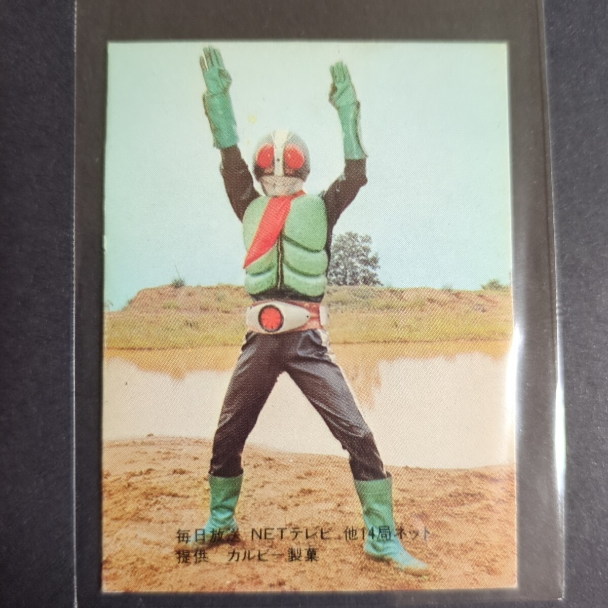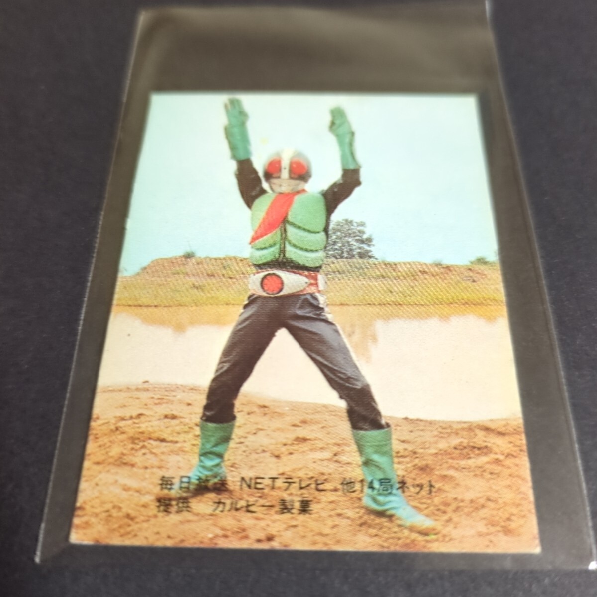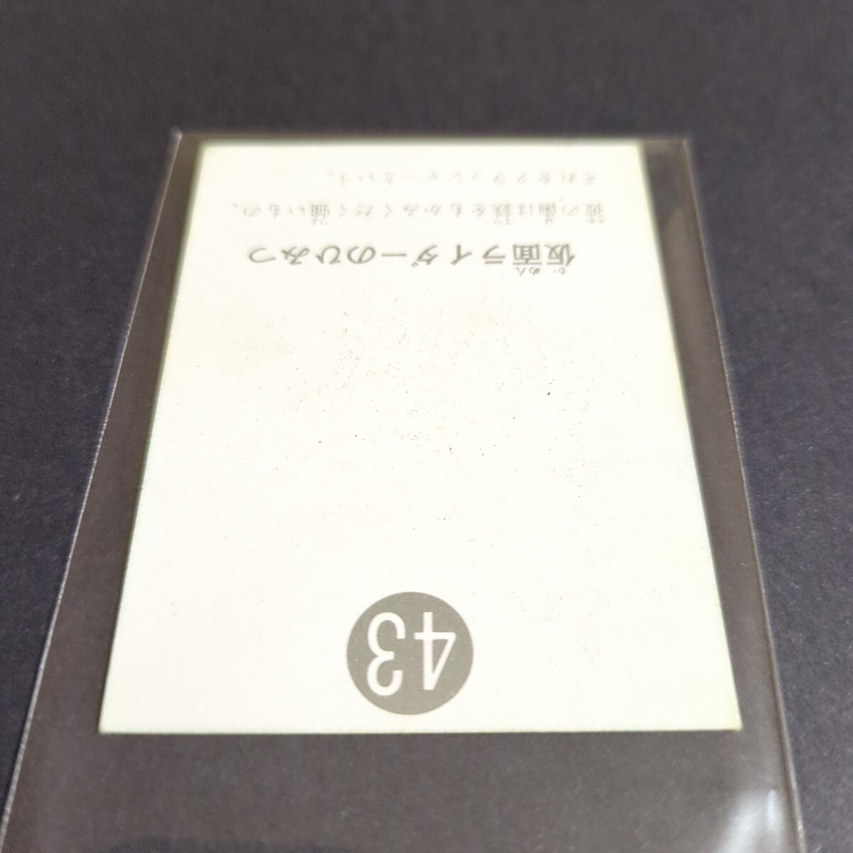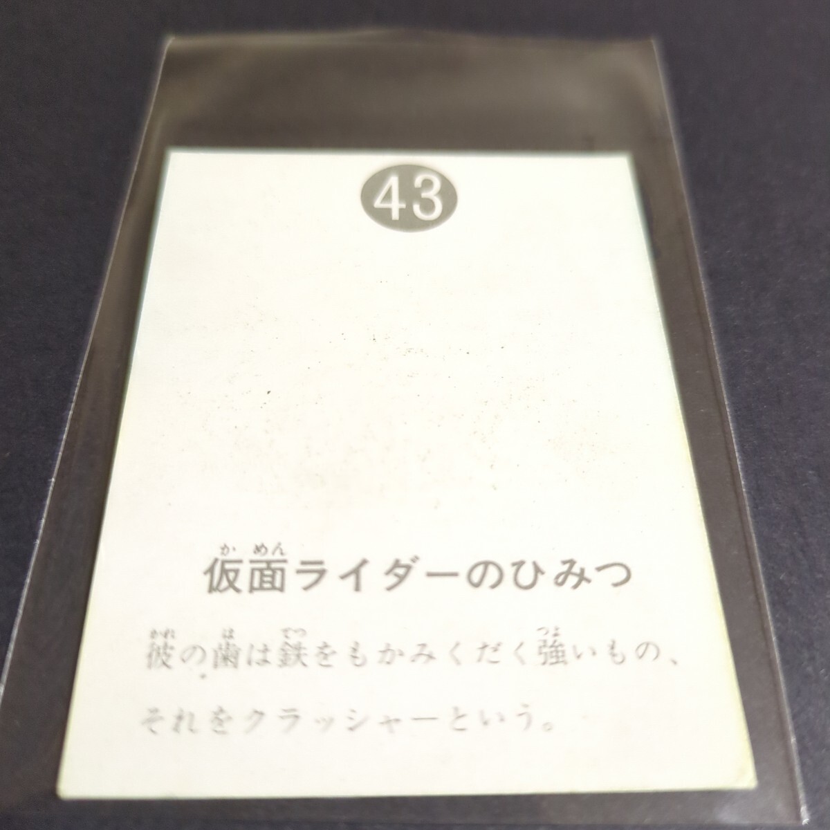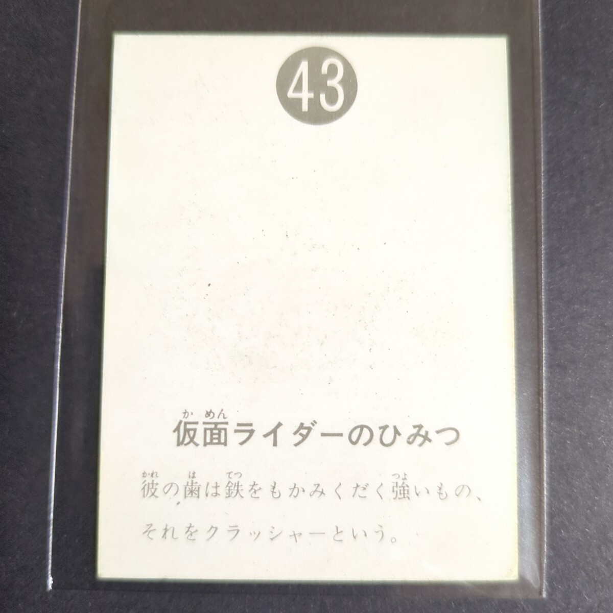 旧カルビー仮面ライダーカード:43番 仮面ライダーのひみつ【表14局版】(中古・良品)です。