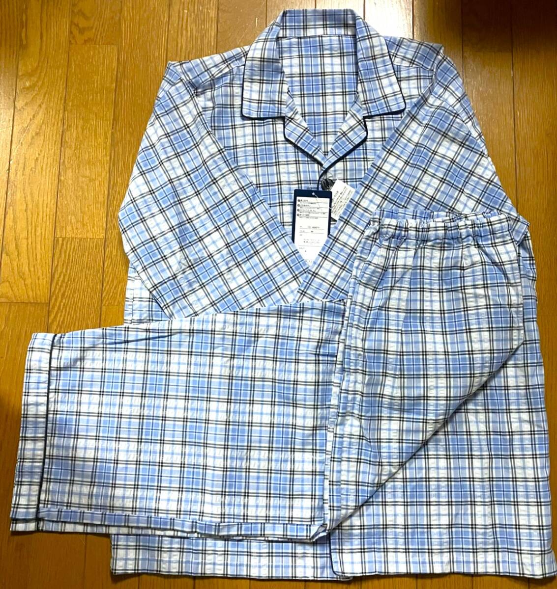 送料の誤差については ご了承ください。不足の場合は当方が負担します。パジャマの上下セットです。チェック柄メンズLL水色綿100%新品ですが 素人保管のため撮影の色味 サイズの誤差 初期キズ等 ご了承いただける方のみ ご購入 お願いいたします。発送は郵便局のゆうパケットを 予定しております。