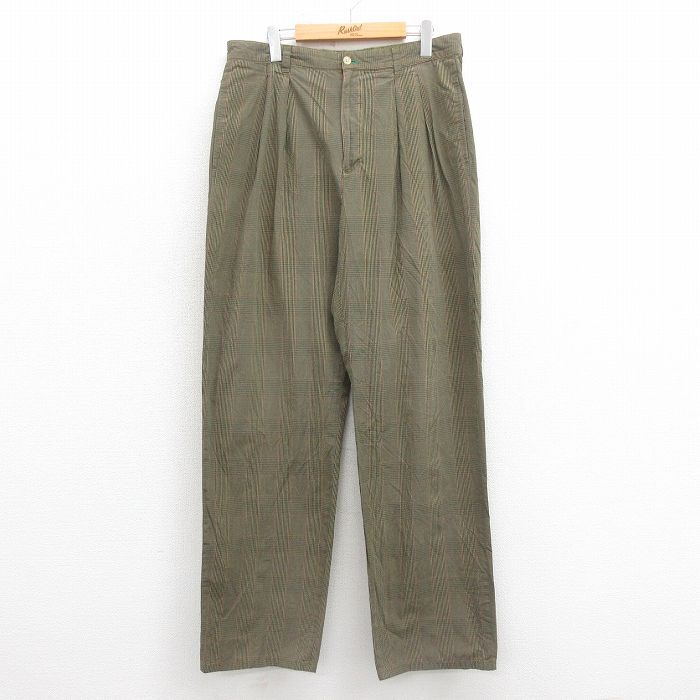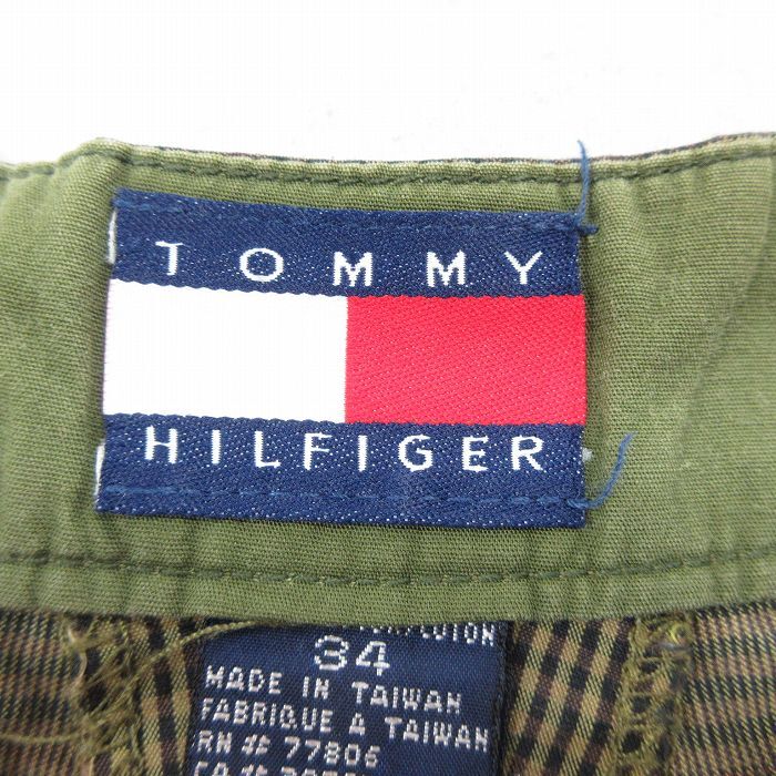 【商品名】 W34★古着 トミーヒルフィガー ブランド パンツ メンズ 90年代 90s コットン 緑他 チェック