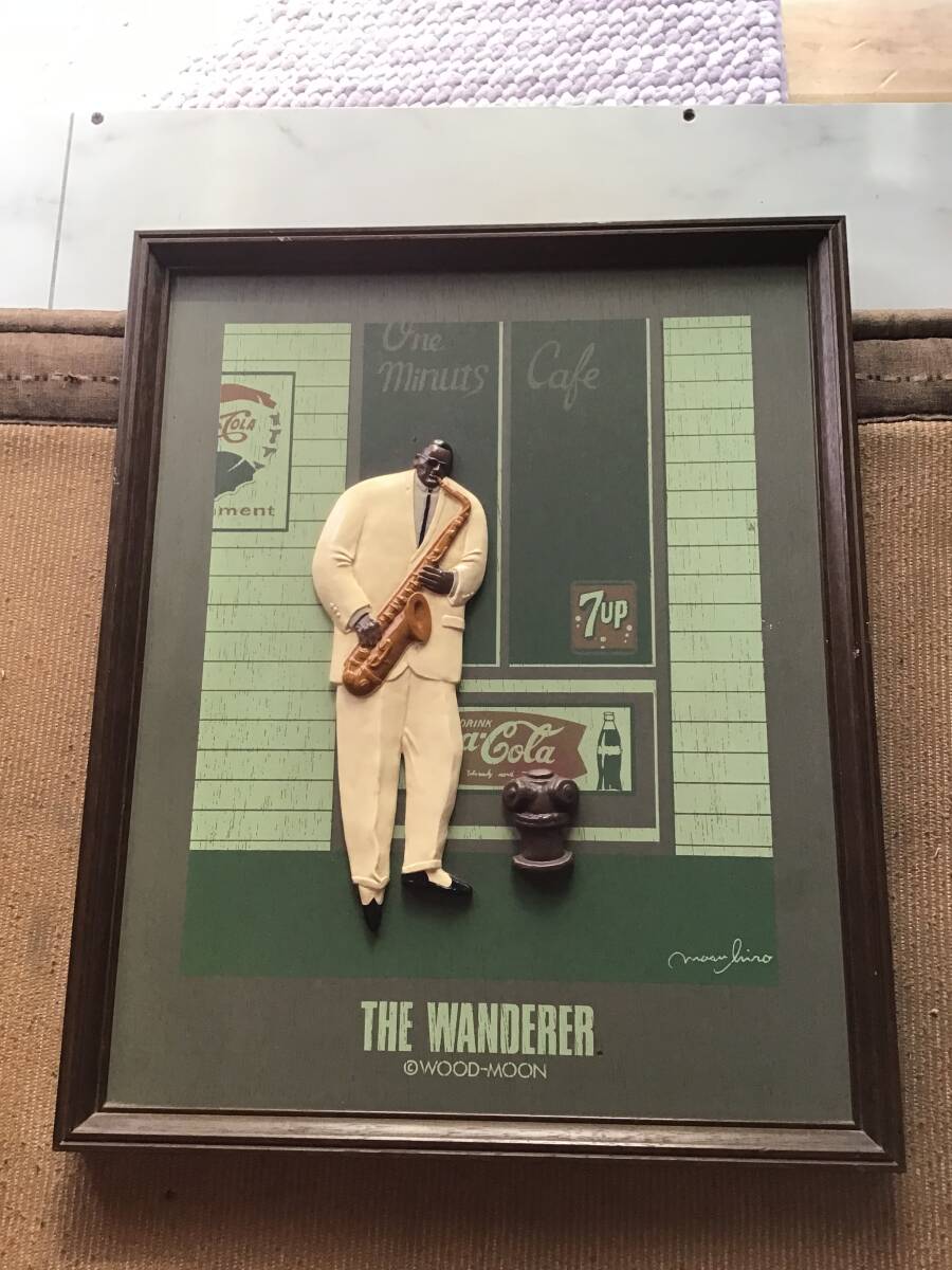 レトロ ビンテージ アンティーク WOOD MOON THE WANDERER 電子 オルゴール 額 インテリア JAZZ ジャズ イラスト masuhiro masahiro
