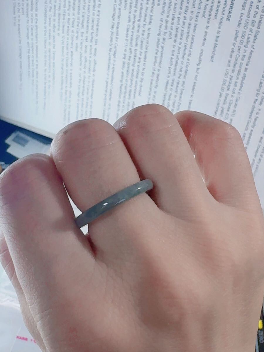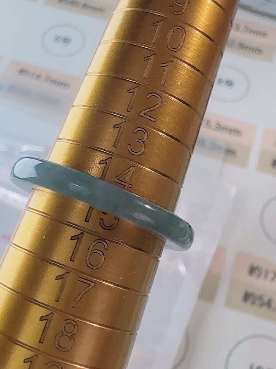 R2-02159天然本翡翠《本物保証》 藍水翡翠 指輪約14~15号 一点物 希少 縁起物 お守り 魔除け 昇進 成功 風水 金運 財運 幸運 幸福