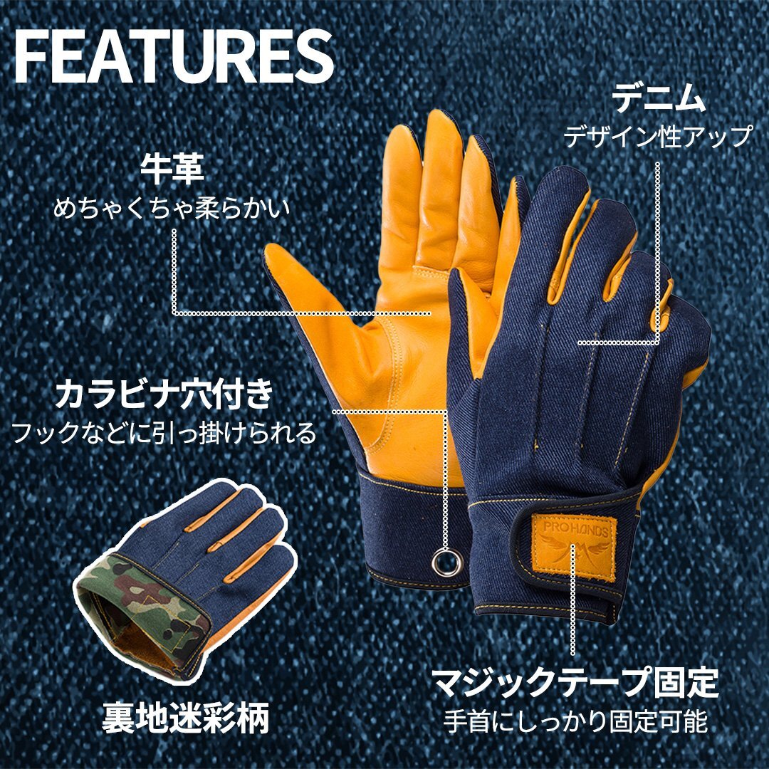 バイク用グローブ バイクグローブ 作業用手袋 バイク用手袋 手袋 グローブ バイク アウトドアグローブ バーベキュ 焚火 焚き火 作業用 柔らかい おしゃれ 手にフィット 使いやすい カッコイイ PROHANDS フィット 夏 春 オートバイ 原付 山登り アウトドア バイク 自転車 釣り フルフィンガー 手袋 オフロード 薄手 怪我防止 メンズ レディース 男性 女性 デニム 牛革 手にフィット フィット マジックテープ S M L LL 富士グローブ 迷彩 カラビナ オシャレ 耐久性 柔らかい オシャレ クール かっこいい キャンプ ツーリング キャンプ BBQ 日曜大工 DIY