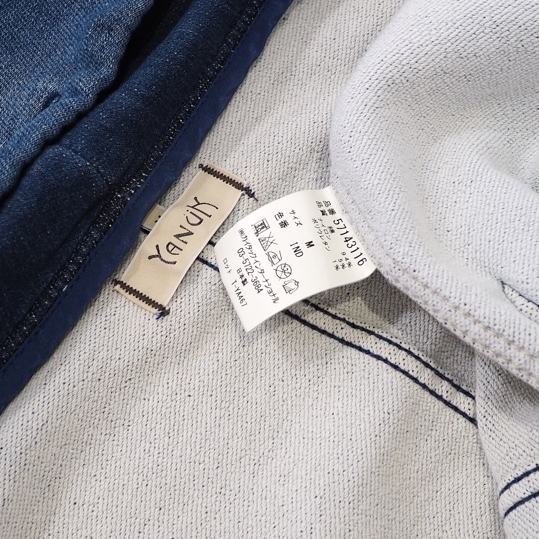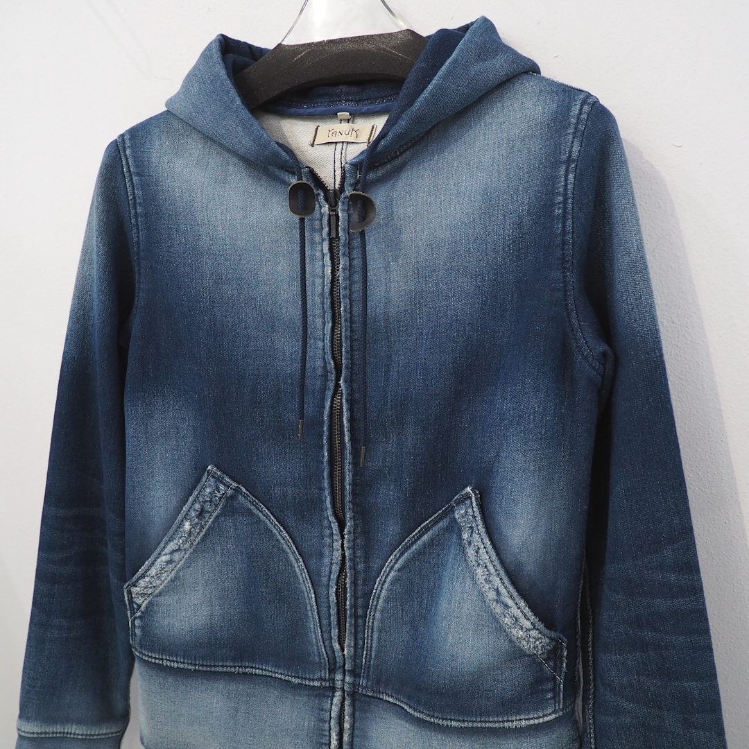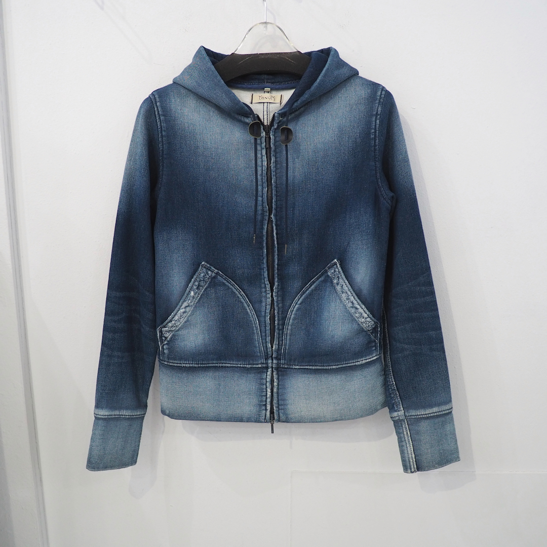 定価3万 ヤヌーク デニット フーディー ブルー レディース M サイズ YANUK スウェット デニム ダブル ジップ パーカー 細身 タイト ニット