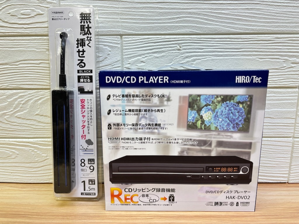 【HIRO/Tec】DVD/CDディスクプレーヤー HAK-DV02HDMI出力端子付きテレビ番組を録画したディスクもOK!レジューム機能搭載外部メモリー保存データ再生機能HDMI出力端子付き商品詳細ジャンル名家電JANコード10点【HAK-DV02】:4562350994614サイズ・容量本体サイズ:約226×196×49㎜本体重量:約750gパッケージサイズ:約幅257×高さ240×奥行85㎜パッケージ重量:約991gアウトカートンサイズ:約570×468×285㎜アウトカートン重量:約12.6㎏規格■生産地:中国■素材・成分:■パッケージ:注意事項【仕様】電源定格:AV100V 50/60Hz消費電力:約11W設置環境(推奨):(温度)0~40℃/(動作姿勢)水平※結露なきこと出力端子:AV(RCA)出力、HDMI出力インターフェイス:USB2※おまけで充電に便利な差し込みフリータップをおつけします新品未使用品