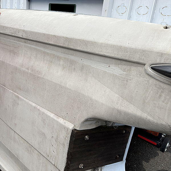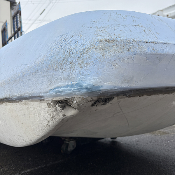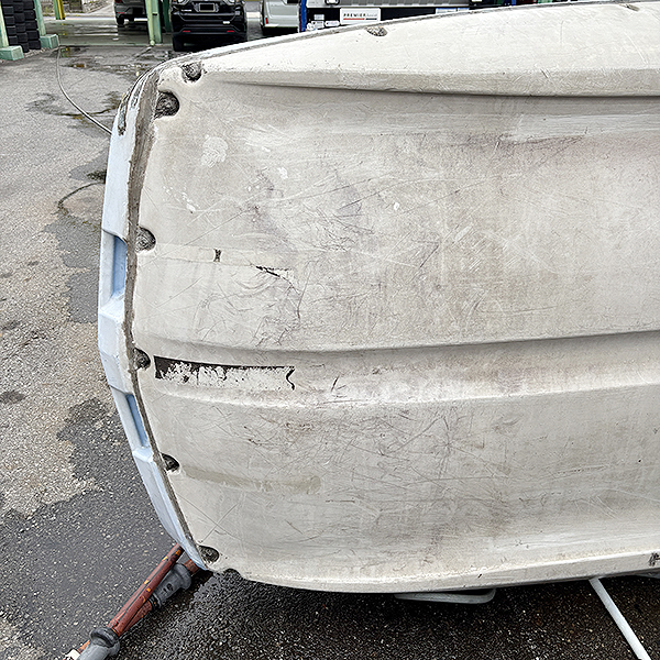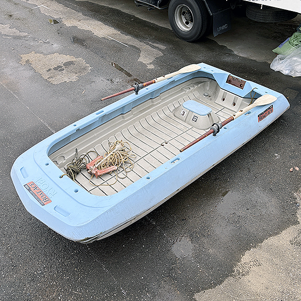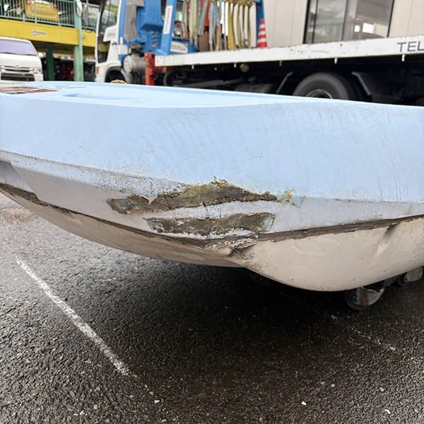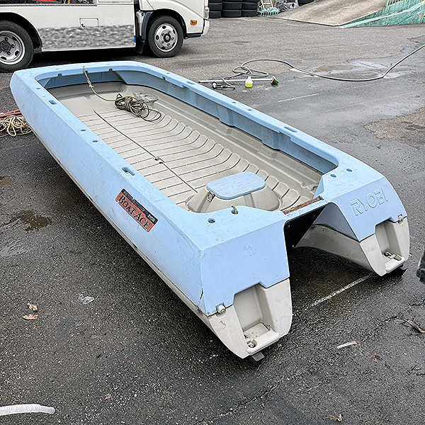 | 友人の代理出品です。 4、5年前に友人が前オーナーより譲り受け、使用することなくガレージの外に立てかけて放置していた船体です。 今回出品するために掃除がてら詳しく見たところキズは多いものの致命的な割れは見当たらず、手直ししたらまだまだ使えそうでした。 ボートエースシリーズの最大サイズでけっこう大き目の船外機も搭載できるレア物のようです。 以下に確認して気付いた点を列挙しておきます。 ・上下が分割構造になっておりボルトで固定しているのですが、そのボルトすべてにコーキングがされています。 ・上下が別れる部分が一周コーキングされています。 ・右前カドにクラックがあったようで友人がコーキング処理したそうです。 ・オールが2本付属しますが純正品かは不明です。写真のアンカーも付きます。 ・内部に少し水が入っているかもしれません。 これ以上の状態は水に浮かべてないので不明です。 船の専門家ではないため見落としもあるとお考え下さい。 全長330センチ、重量55㎏あるため発送は不可です。引き取りに来ることができるかたのみご入札をお願いします。 前オーナーが軽トラに積むためのヤグラを単管で作った物がありますのでご希望でしたらそちらも一緒にお付けします。 引き取り場所は愛知県西尾市です。積み込みのお手伝いはします。 あくまでも修理前提にお考えいただきノークレームでお願いします。 |