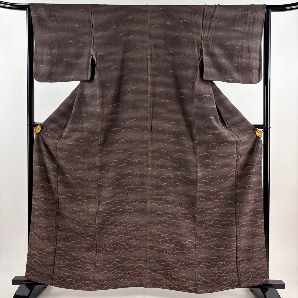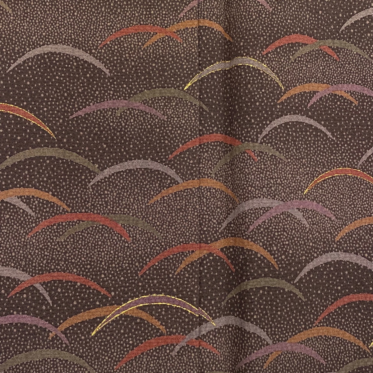 | 付下げ 秀品 芝 霞 金彩 茶紫 袷 身丈162.5 裄丈62 S 正絹 【中古】 |