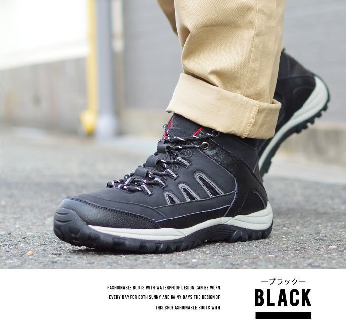 新品■27cm ブーツ メンズ トレッキングシューズ 防水 アウトドア シューズ 幅広 3E EEE 防滑 撥水 ミッドカット カジュアル 登山 紐靴