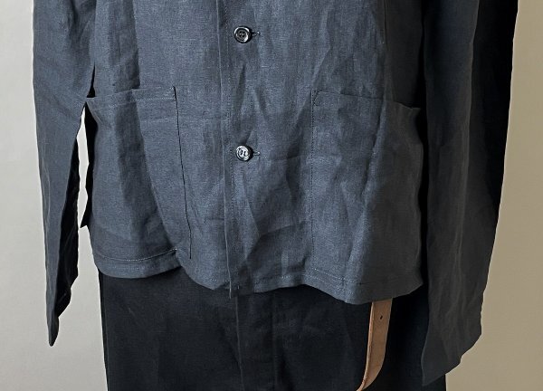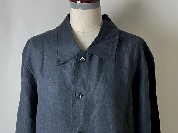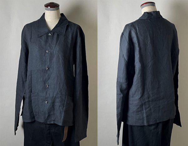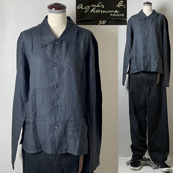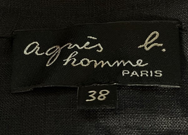 【ルーマニア製 国内正規品 名作 00s 美品】agnes b. homme アニエスベー オム リネン100% 麻 長袖 ボタン シャツ ジャケット 38 ブラック