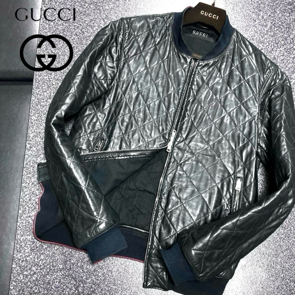 極美品◆70万GUCCI【日本未発売モデル】カーフスキン レザージャケット【一点物・一生物】黒色◎イタリア製 48(ML相当)メンズ/ダウン